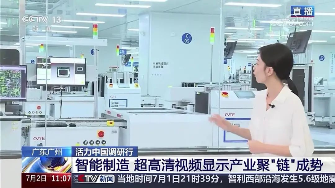 今天(7月2日)上午11:00,央视新闻频道《新闻直播间》“活力中国调研行”特别报道,走进位于中新广州知识城的广州视源电子科技股份有限公司(以下简称“视源股份”)第五产业园。