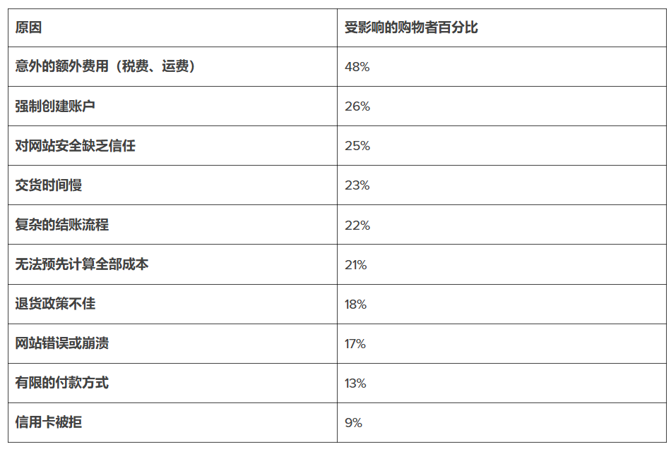 顾客在付款阶段放弃购买的原因(图片来源:bluehost.com)