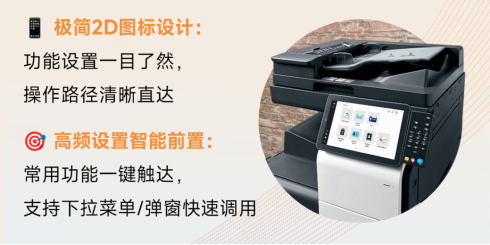 2019年,柯尼卡美能达bizhub i系列数码复合机采用了类似智能手机的全新用户界面