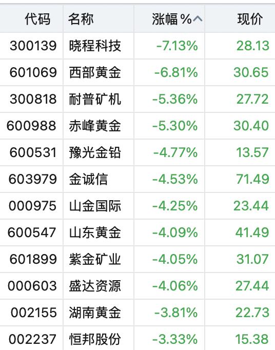 北京时间10月10日,A股盘初,黄金、有色金属板块多数下挫。黄金概念方面,晓程科技跌超7%,西部黄金跌超6%,赤峰黄金、山东黄金、湖南黄金等纷纷下挫。