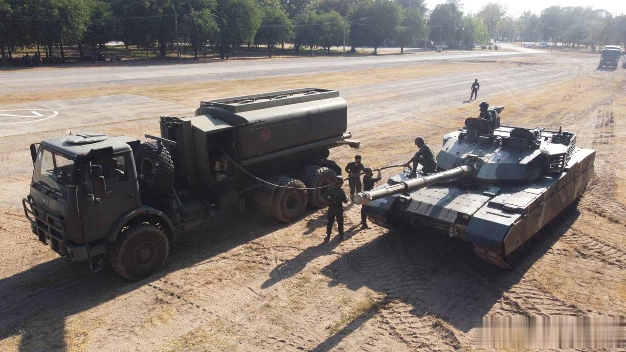 泰国陆军给VT-4坦克加油,加油时居然还要一人手持灭火器时刻对着加油口,有这必要吗?