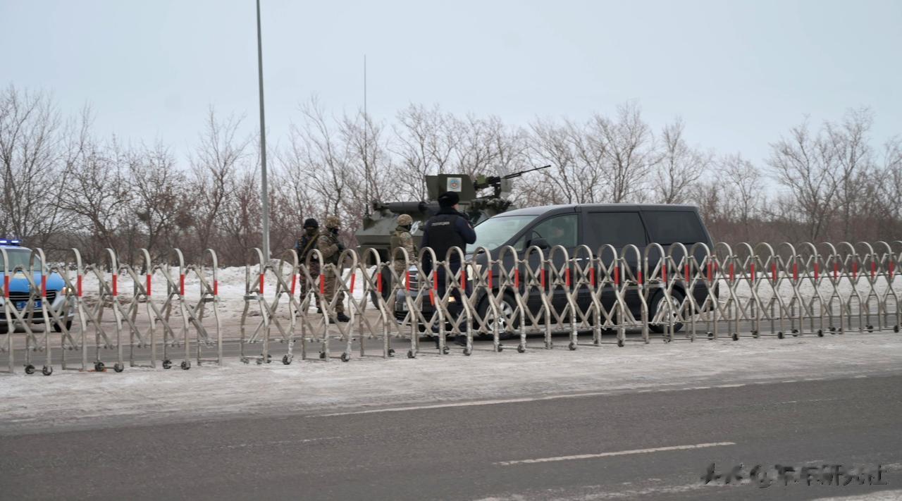 把守交通要道的哈萨克斯坦军队土耳其制眼镜蛇高机动装甲车(图1-5)和阿兰防雷车(