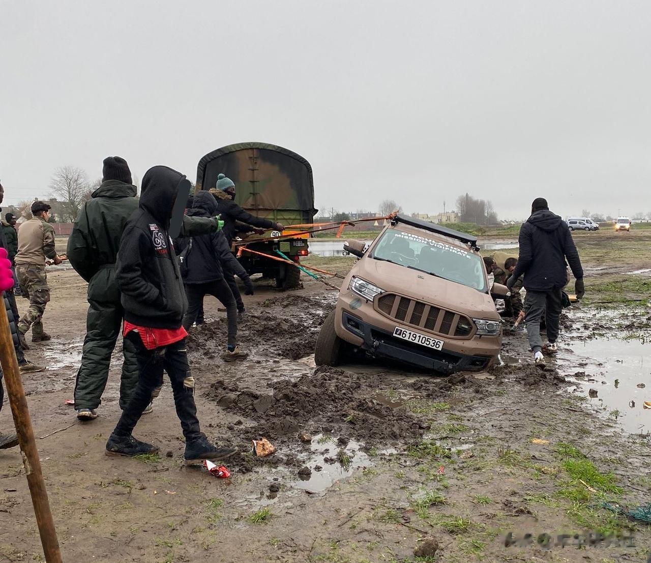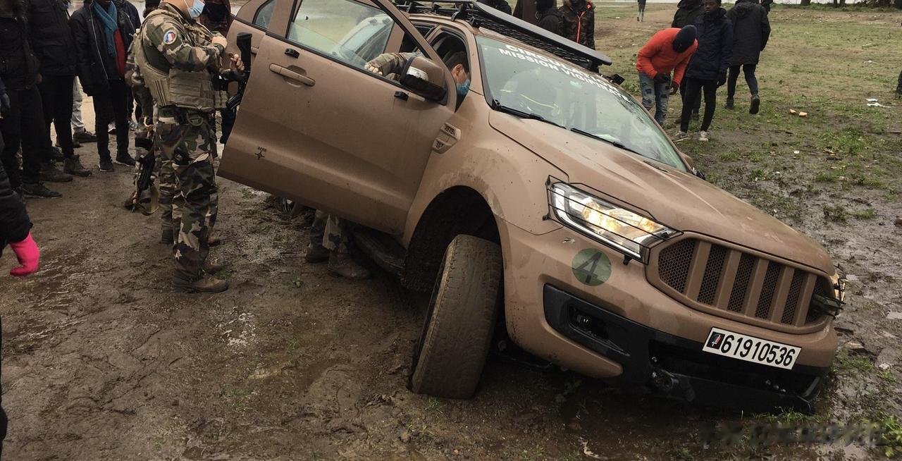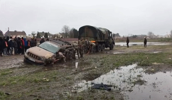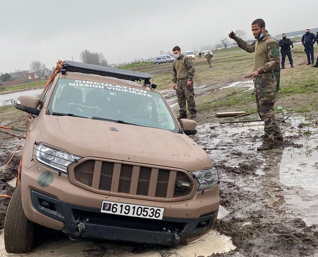 法国北部城市加来市,法国士兵驾驶一辆阿古斯VT4 战术车辆(福特撼路者的特制版)出现在当地一处越野爱好者常聚集的湿地,并在众目睽睽之下驾车撒欢,炫耀车技,结果没一会就陷车了,也不知道是来砸场子的还是来搞笑的[捂脸]!最后不得不召唤了一辆6X6的雷诺GBC180(东方红LT665原型车贝利埃GBC 8KT的后代)军用越野卡车前来救援!