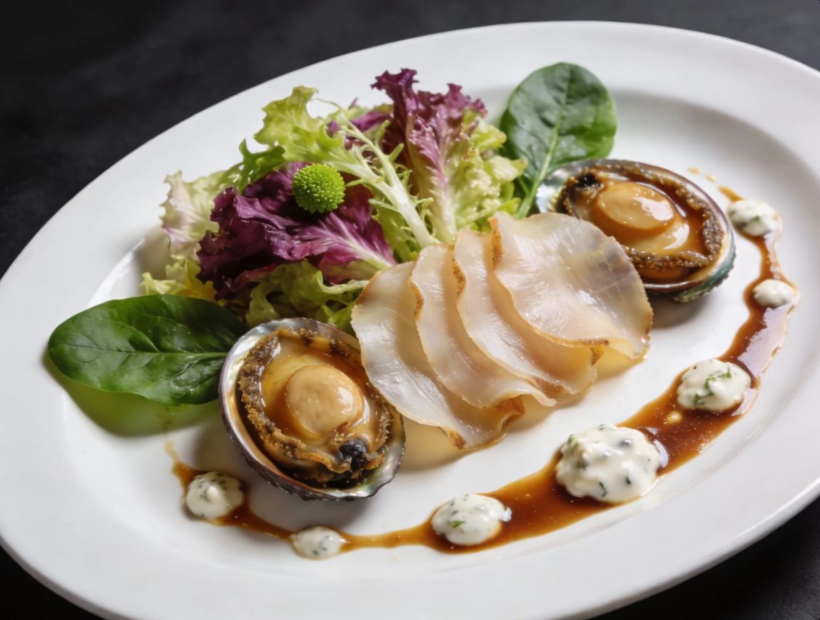 酱汁之魂:绝非普通蛋黄酱,而是特调的 “香草柠檬乳酱” 。以法式第戎芥末、新鲜龙蒿碎、莳萝、鲜榨柠檬汁与顶级橄榄油,乳化调和而成,酸香清爽,极具穿透力,能解鲍脯之醇厚而不夺其味。