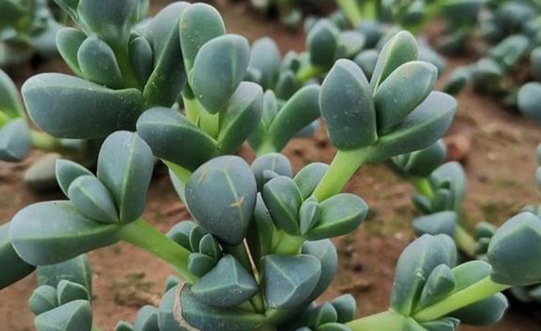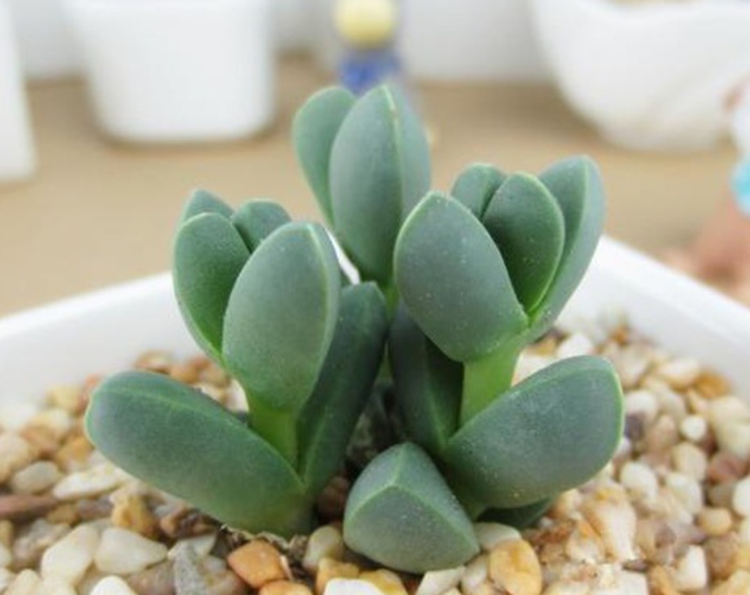 我们来对比一下鹿角海棠和其他几种冷门多肉植物。首先是生石花,生石花和鹿角海棠一样都是多肉植物,但是生石花更像个小胖子,它的叶片肉质肥厚,紧紧地贴在地面上,而且它非常奇特的一点是可以开出白色或者黄色的小花,花朵从叶片中间冒出来就像屁股上长了个小花一样。生石花在种植的时候对光照的要求也很高,不过它比鹿角海棠更怕热,在夏季高温的时候会休眠,需要特别注意遮荫降温。在西北的一些干旱地区,生石花的生长就比较有优势,因为那里阳光充足,空气干燥,只要浇水控制好,生石花就能长得很好。