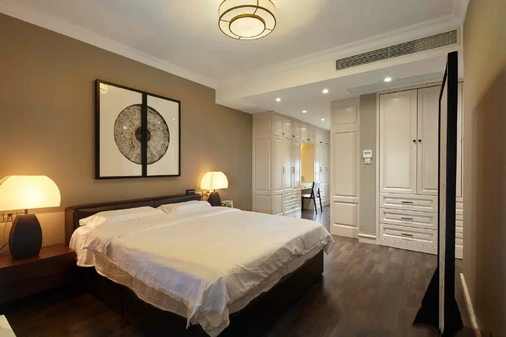 主卧室的硬装其实也是非常简单,最主要的就是定制的柜子,而其次就是软装上的布置了。
