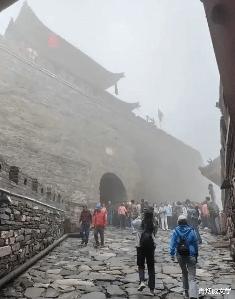 进大门后要买10元车票,乘景区交通车前行2公里,到达北城门“明月楼”。这也是古代御敌的第一道关口,三孔门洞,正中上方石匾额书“雁门寨”三字,明代风格,颇为壮观。