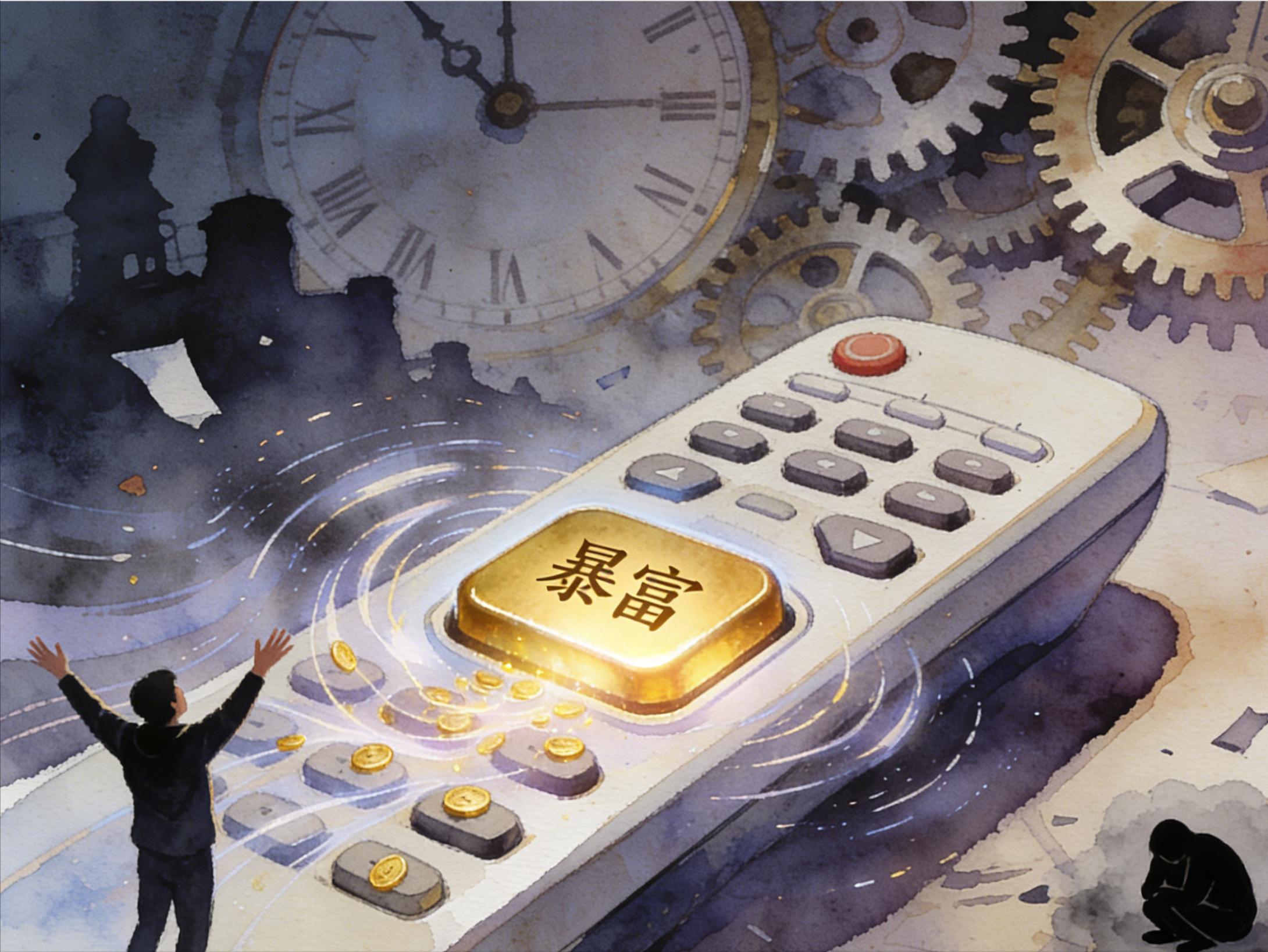 按键二:【暴富】键按一下,一个亿到手。但代价是,地球上随机一个人,瞬间破产,变得一无所有。