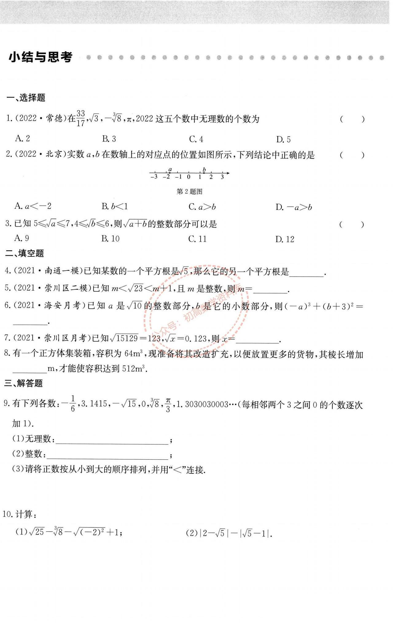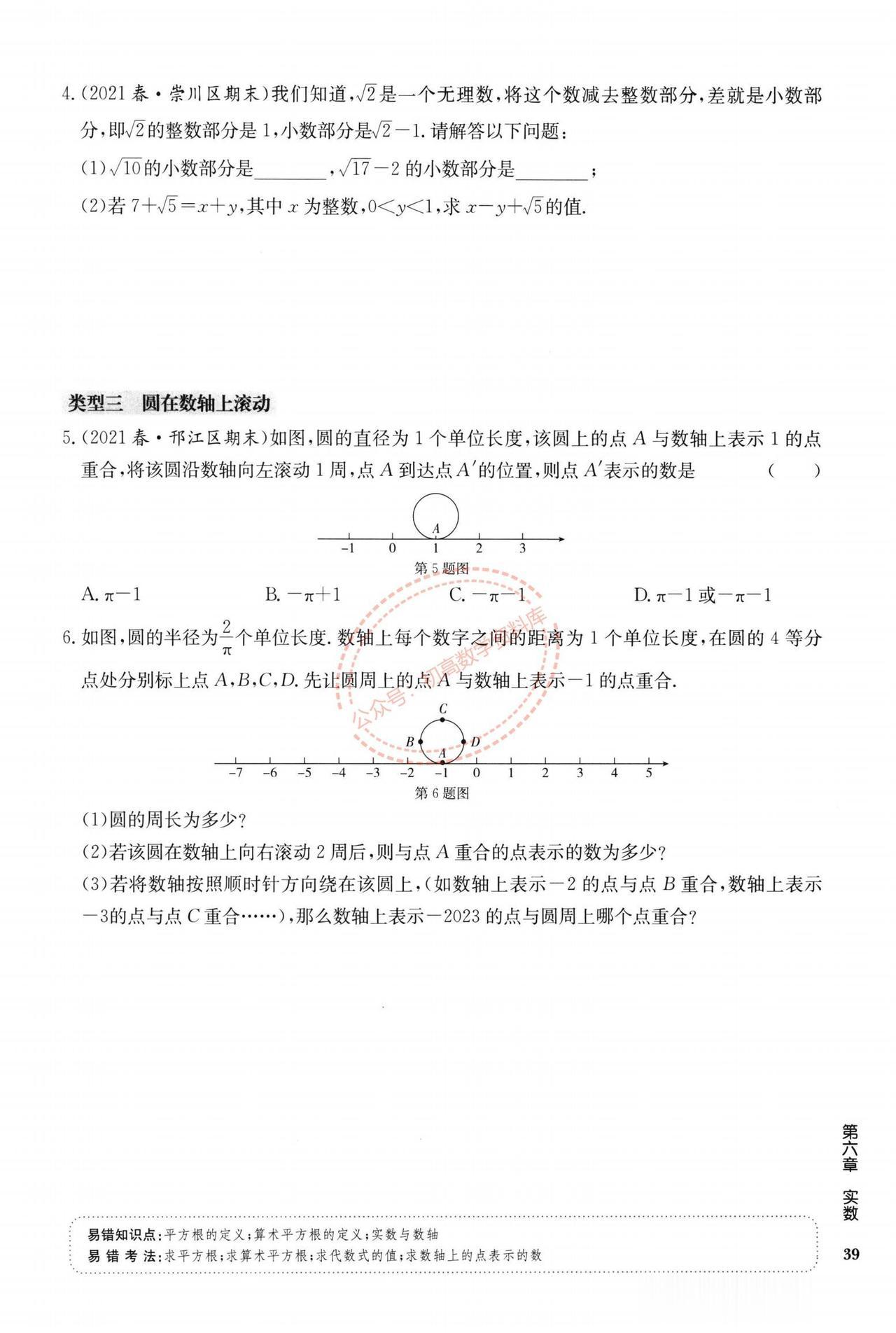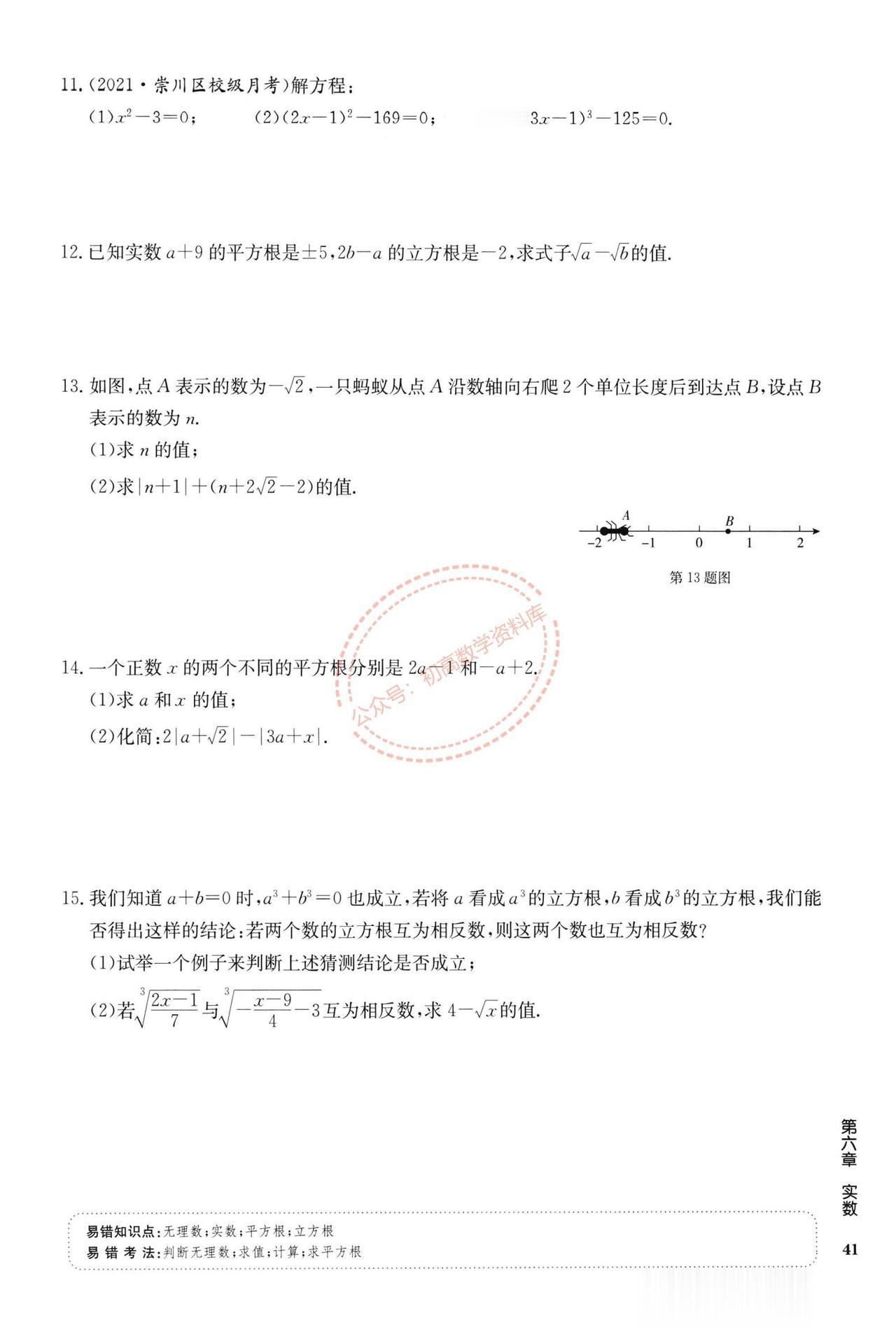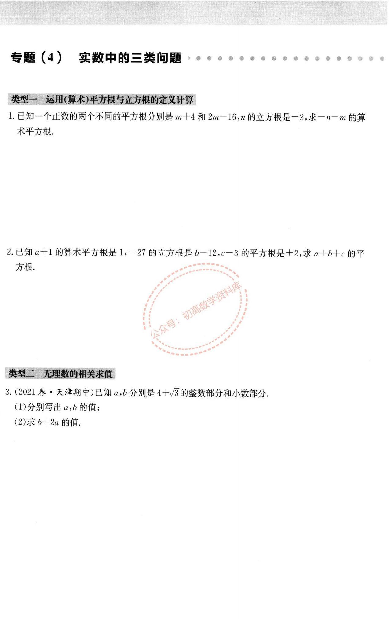 七年级数学周末作业训练汇编(打印版) 1、实数中的三类问题 2、平面直角坐标系
