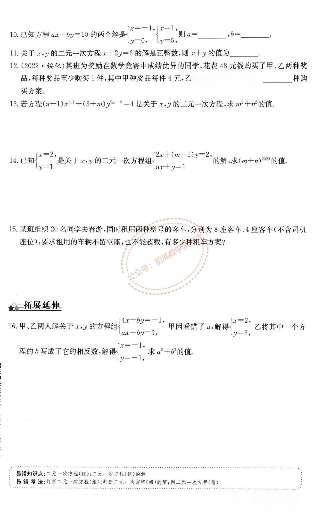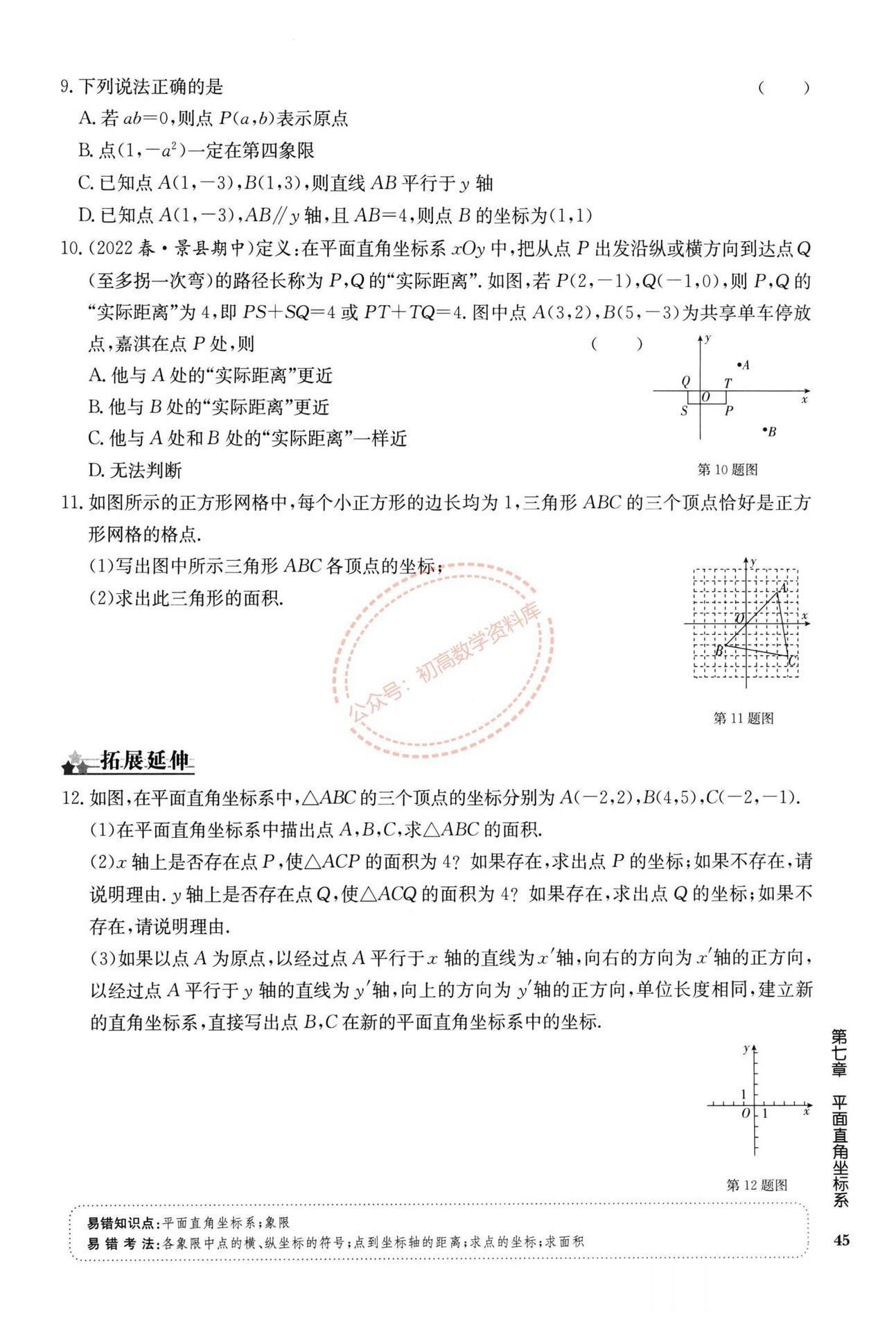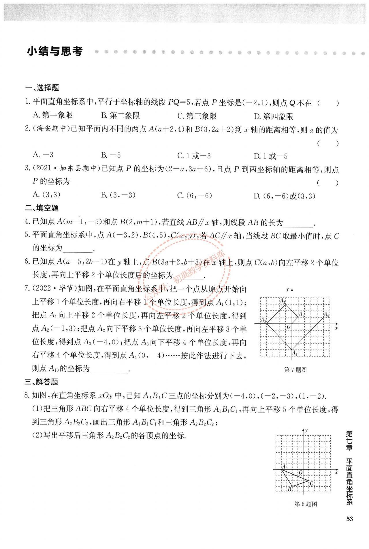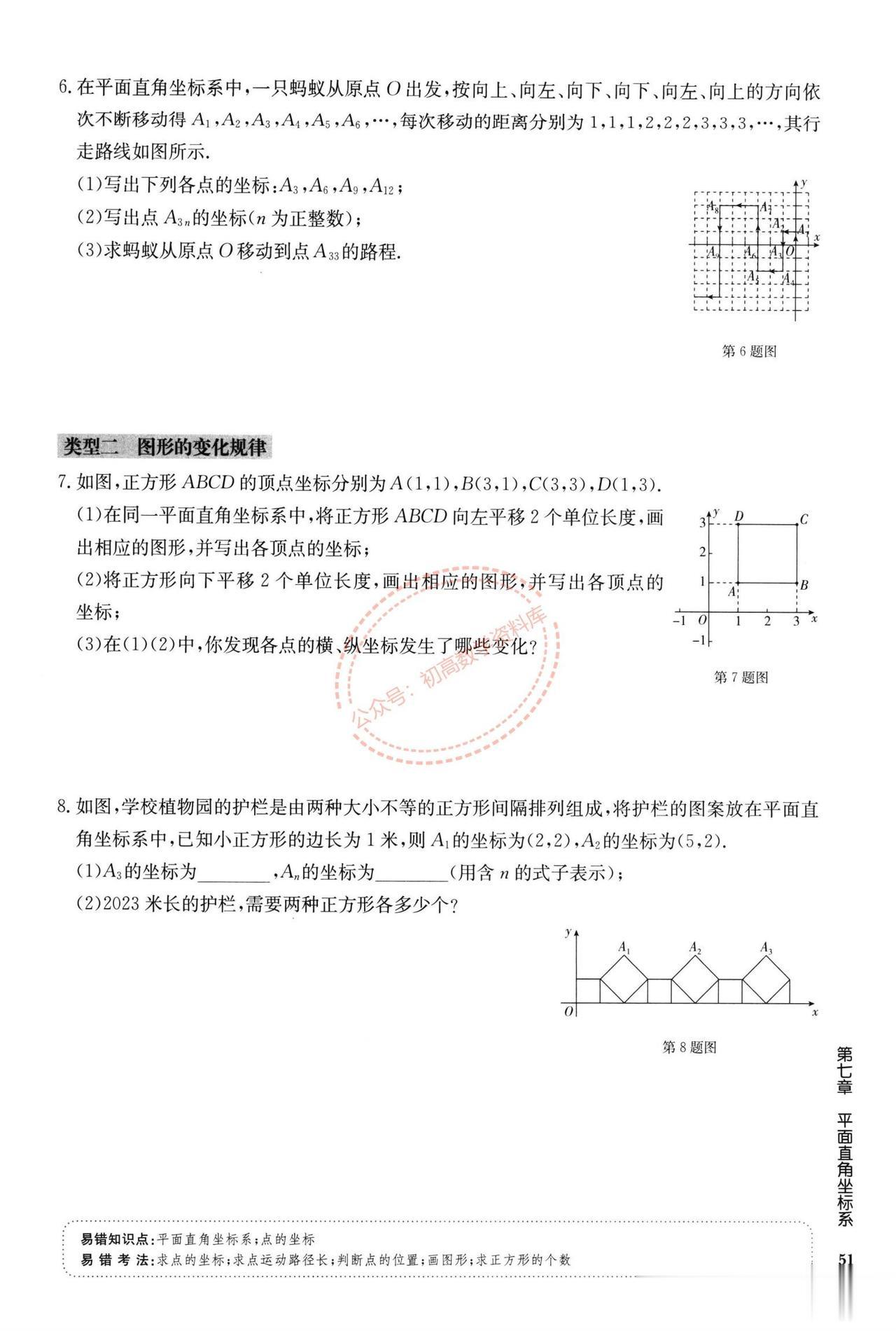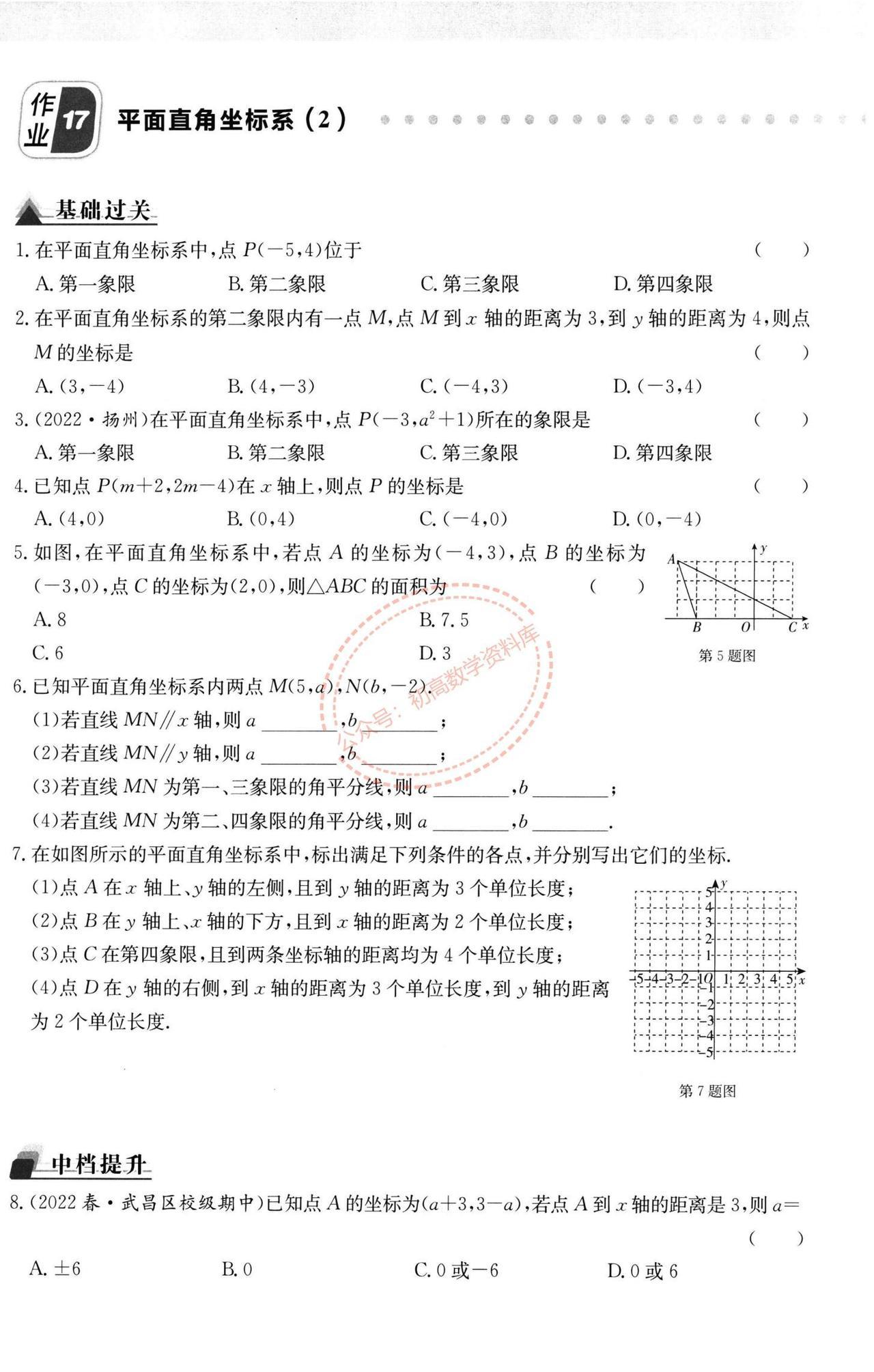 七年级数学周末作业训练汇编(打印版) 1、实数中的三类问题 2、平面直角坐标系 3、坐标方法的简单应用 4、坐标系中的规律探索 5、坐标系中的面积问题 6、二元一次方程组