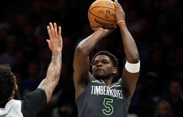爱德华兹无球借里德”远切掩护“(Flare Screen)起手,接球后顺势转身启动突破,行进间见科内特站住护框位置封堵向篮下突破的路线,急停虚晃点飞追防的卡斯尔后立即回拉,收回前脚完成脚步重置随即出手后仰中投。