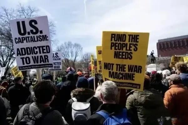 世界格局波诡云谲,世界都受到俄乌战争的影响,通货膨胀加剧。美国为了抑制通膨人为加息,因受到恶意加息的影响,银行接连暴雷,美民众对政府极为不满,而据目前态势,以美国为首的西方并未有平熄俄乌战争的打算,而是不断加码,剃刀拱火,点燃了美国民众心中积压的怨气和怒火,从而反战情绪越演越烈,3月18日下午,上千名美国反战人士走上街头,在美国首都华盛顿市白宫北侧拉法耶特广场举行大规模的抗议游行! 此次抗议游行对拜登政府的政策非常不满,国内民生得不到解决,确大把的金钱和武器援助乌克兰战场,给日益萧条的美国经济雪上加霜。民众强烈抗议并呼吁政府立即停止对乌援助,并呼吁解散北约。抗议者还把棺材抬自白宫门口进行反战抗议游行。 当前美国政客完全背离国民的诉求,对日益恶化的经济没有积极的应对措施,反而是在即将化脓的经济疮口上继续撒盐,民众对生活指数强烈不满,对政府的不作为,对外国政权的干涉远远大于国内的施政,对陷入困顿的经济任由其自生自灭。最终点燃了民众的怒火给予抗议。 民众高呼“要和平不要战争,要和平不要死亡”!