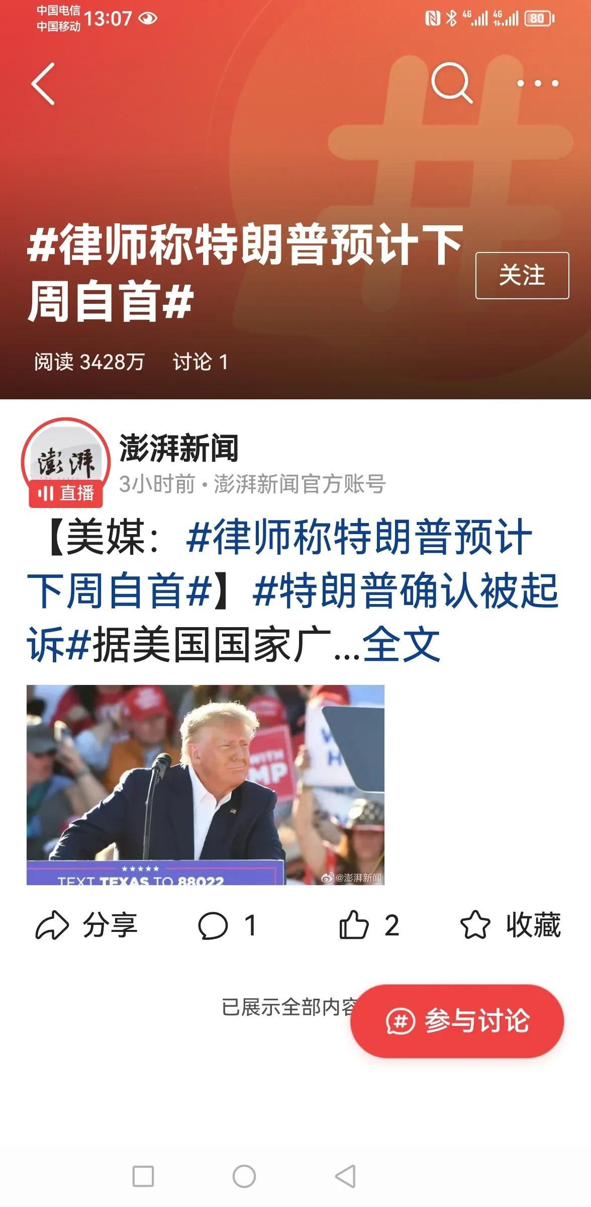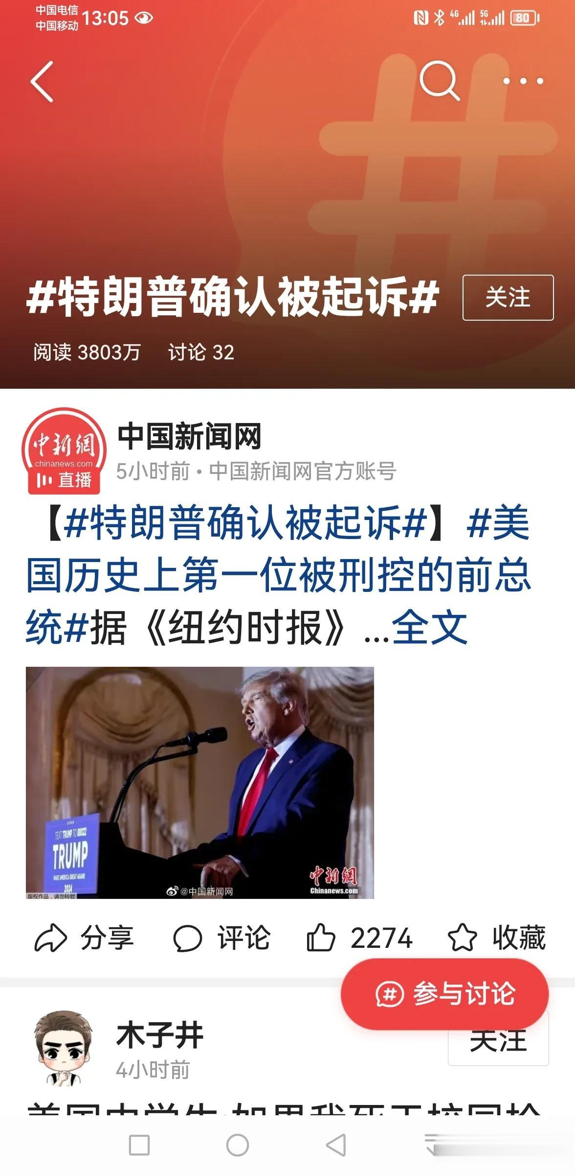 【寰球• 时事-国际观察-2023-566】【特朗普回应被起诉:是最高级别政治迫害】 既然是最高级别的政治迫害,特朗普就赶紧地号召粉丝们,拿起武器,冲进国会,活捉迫害你的刽子手!将政治迫害你的人,也绳之以法! 美国是民主国家,法律面前人人平等。特朗普应丢掉幻想,准备斗争。