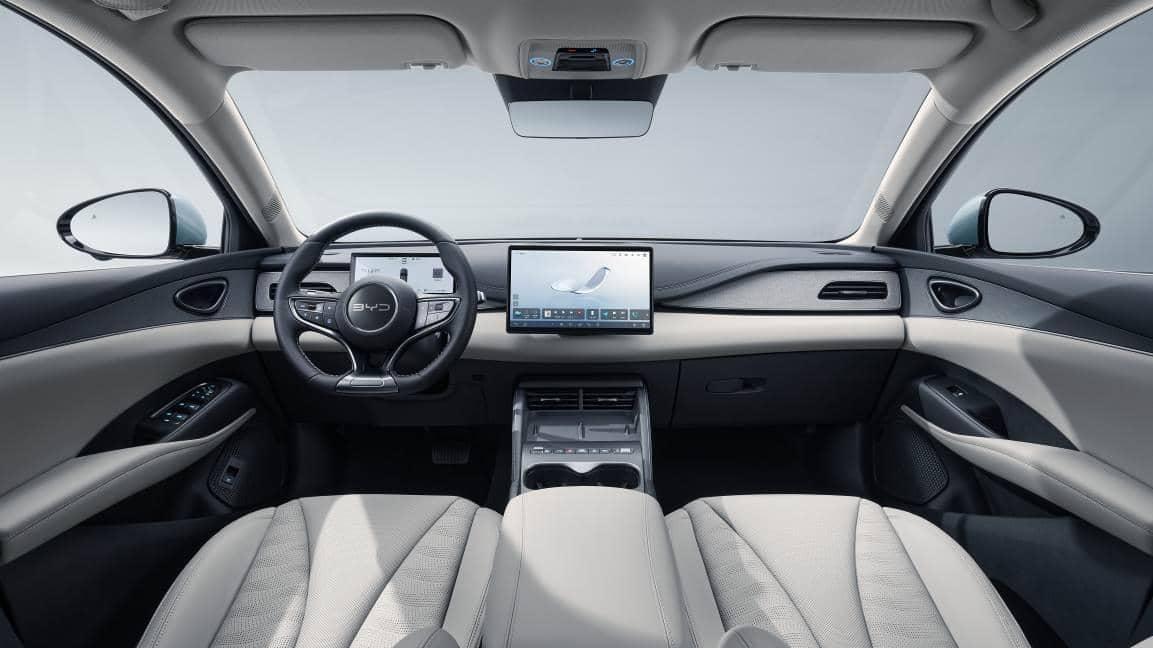 舒适性方面,海豹06DM-i超享版长/宽/高为4830mm x1875mmx1495mm,配合1620mm轮距,带来超越主流中型车的空间表现,为全家出行提供宽适享受。基于对用户需求的洞察与响应,新车全系升级为怀挡设计,不仅让驾驶操作更顺手,也提升了座舱科技感。中控风口面板采用抗污易洁的科技面料包覆,触感舒适且方便打理。此外,灵活可拆卸的分体式头枕、适配多尺寸的方形杯托,兼顾美观与日常使用的便利性。