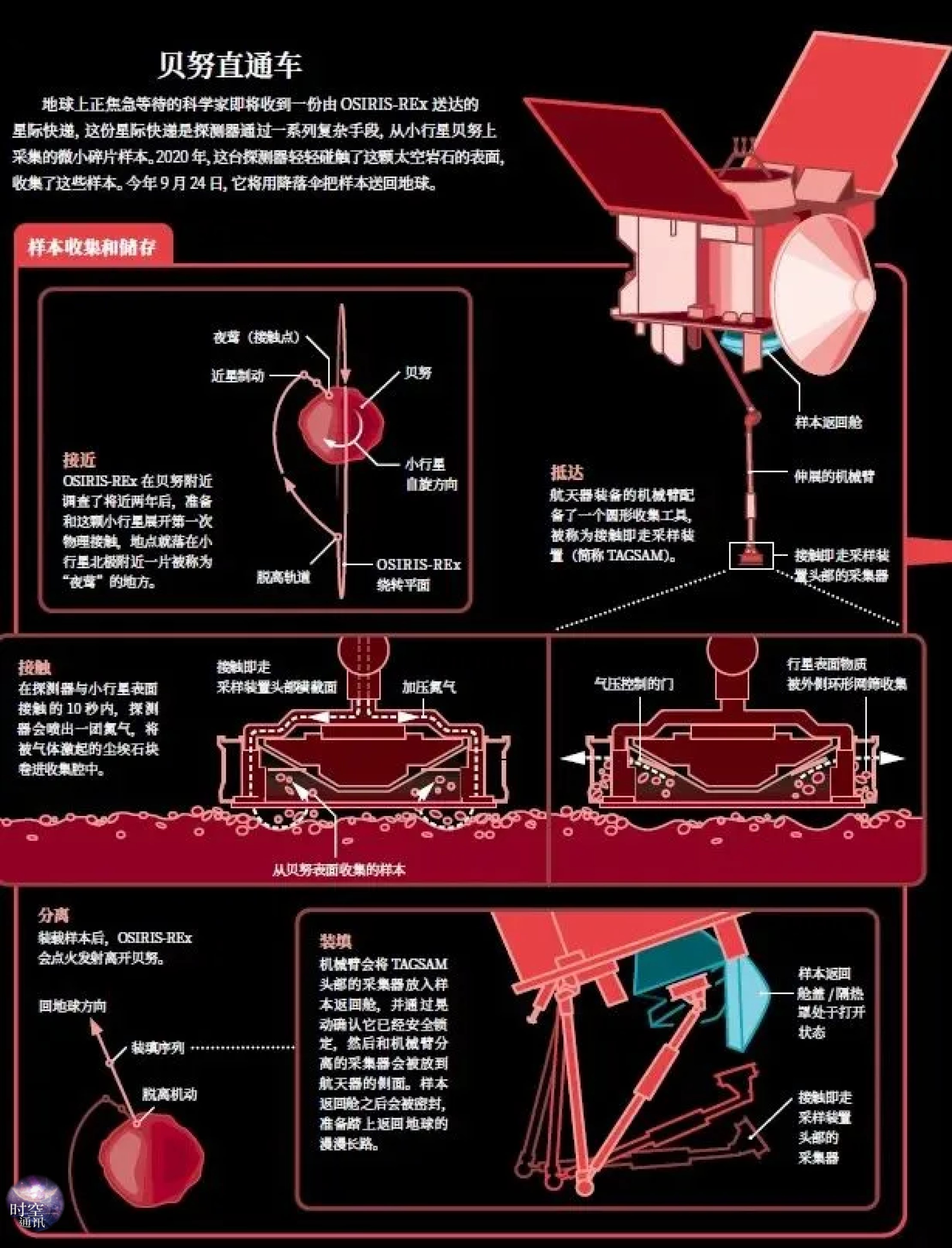 奥斯里斯-REx探测器的采样回收过程大致为: