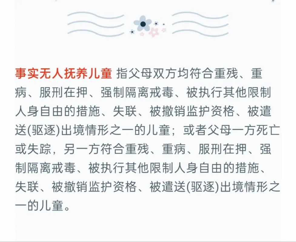 这项政策最暖心的突破,在于认清了现实——不是所有父母都能负起责任。当父母因重病、残疾、服刑或失联而“形同虚设”时,国家果断接手,把“家事”变成“国事”。数据显示,事实无人抚养儿童的保障标准已比三年前提高约三分之一,这份实实在在的投入,让700多万像小杰这样的孩子有了基本生活保障。