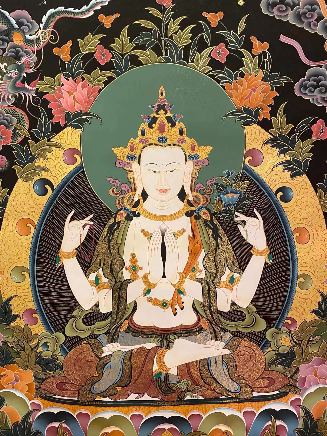 接下来请朋友们欣赏一组沃唐卡编号为153-856833的四臂观音唐卡: