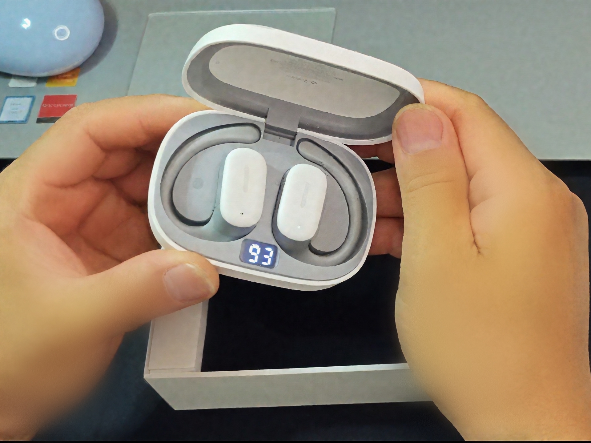 单耳6.8g±0.3g的重量控制堪称变态,长时间佩戴毫无压迫感。硅胶耳挂自带微弹记忆性,戴着眼镜跑步也不会滑落。IPX5防水等级更是运动党福音,雨天慢跑或健身房暴汗后,直接用水冲刷充电盒都毫无压力。