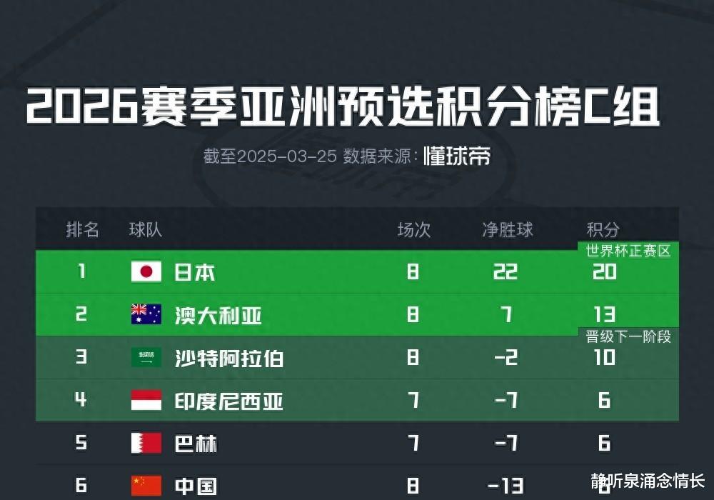 更令人绝望的是,即使中国队在最后两轮比赛中取得全胜,也很难超越沙特阿拉伯和澳大利亚,获得小组前两名的位置。这意味着,中国队想要参加2026年世界杯,只能寄希望于附加赛了。