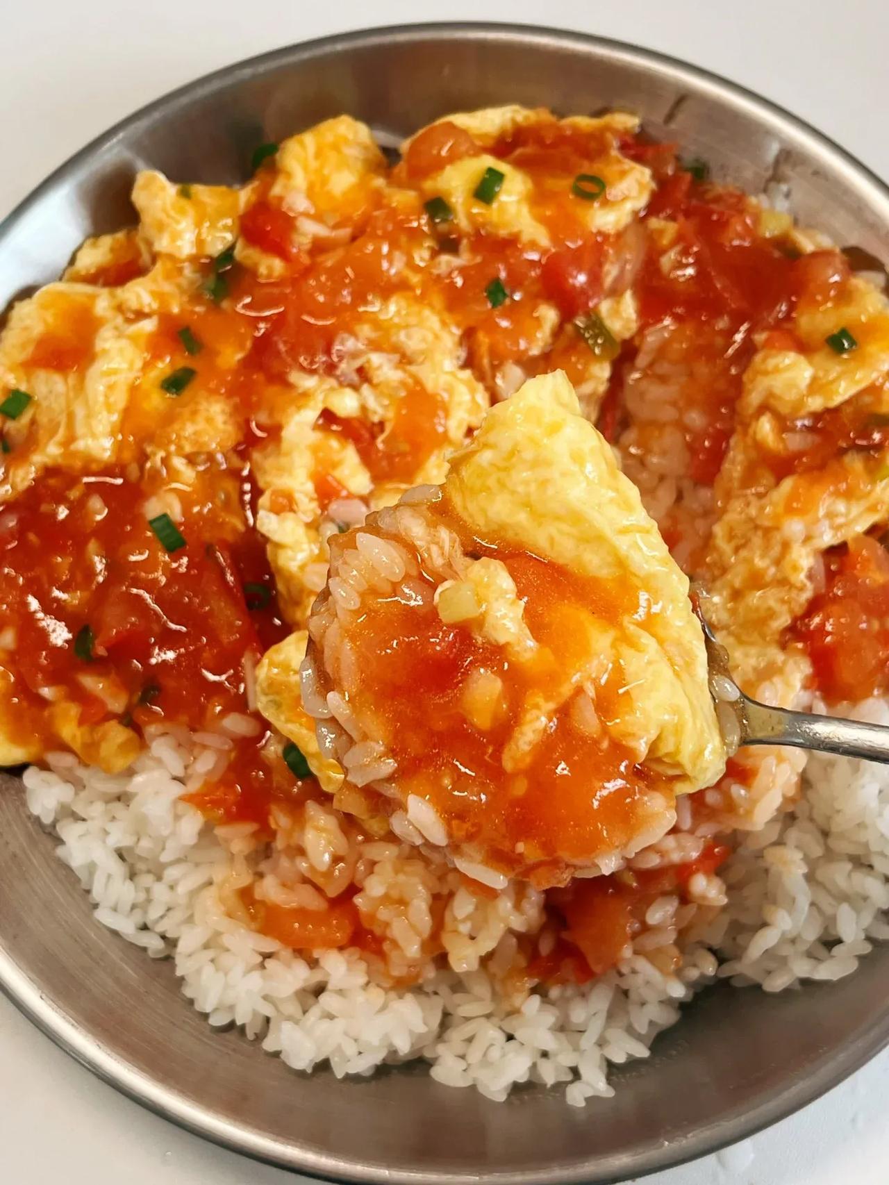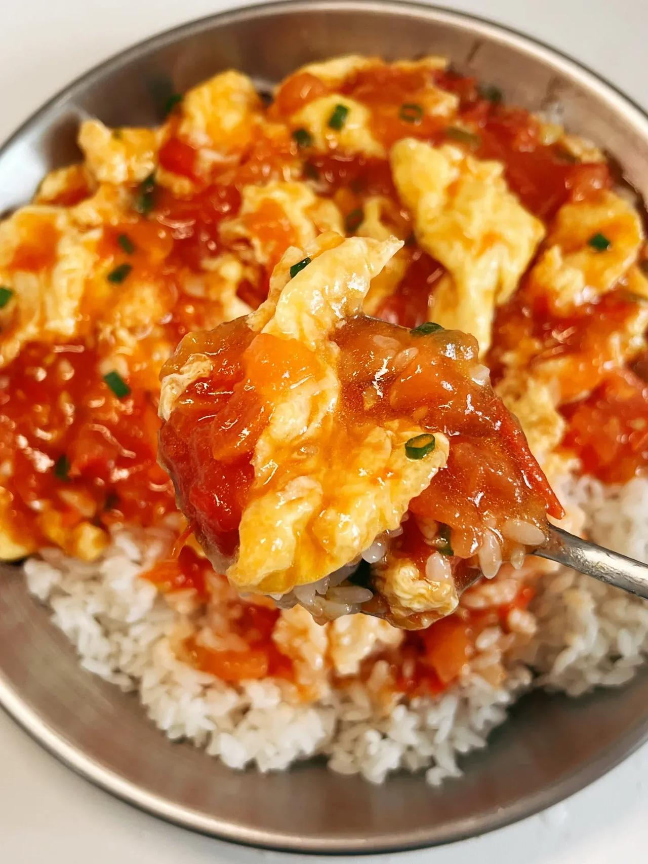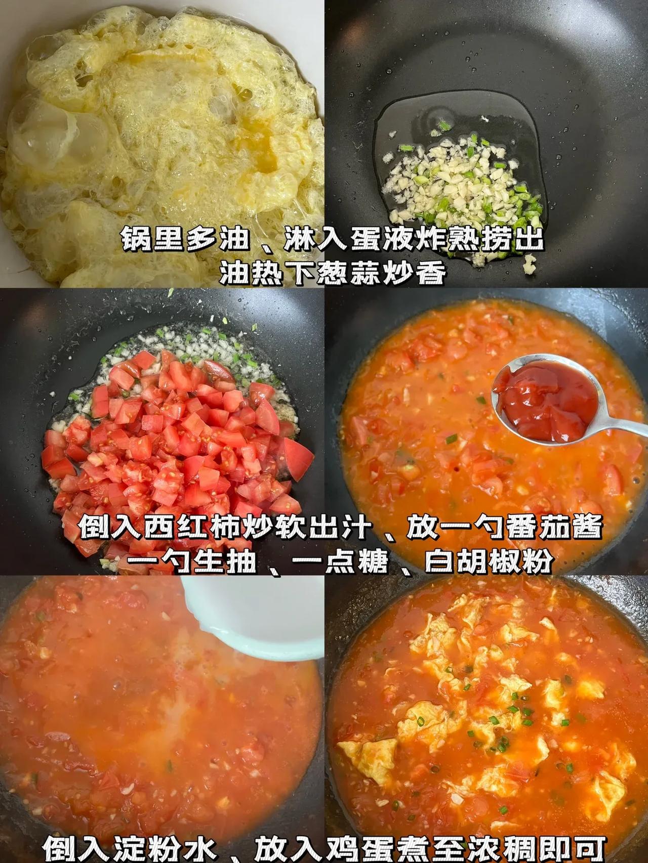答应我、一定要试试这个!!|||真的太好吃了!!快试试! 食材:鸡蛋、西红柿、葱蒜末 做法: 1⃣️油热倒入鸡蛋炸熟捞出备用! 2⃣️油热下葱蒜末炒香、倒入西红柿炒软出汁、放一勺番茄酱、一勺生抽、一点盐、糖、白胡椒粉、淋入淀粉水、再放入鸡蛋煮至浓稠即可!!