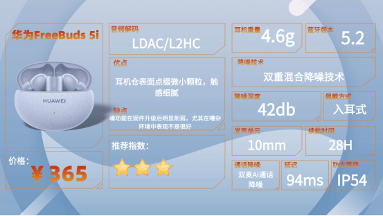 6、华 为F ree Buds 5i蓝牙耳机