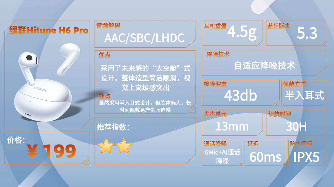 9、绿 联H itune H6 Pro蓝牙耳机