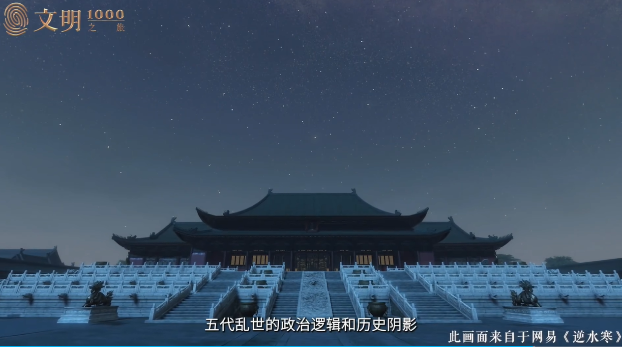细心的观众早已发现,《文明之旅》每期节目都会有《逆水寒》画面出现,从汴河码头的商贩往来,到宫廷殿宇的斗拱结构,均来自游戏的精细建模。节目片尾的致谢环节更是明确提及,网易为节目提供了 “宋朝美学独家计算机图形技术支持”。
