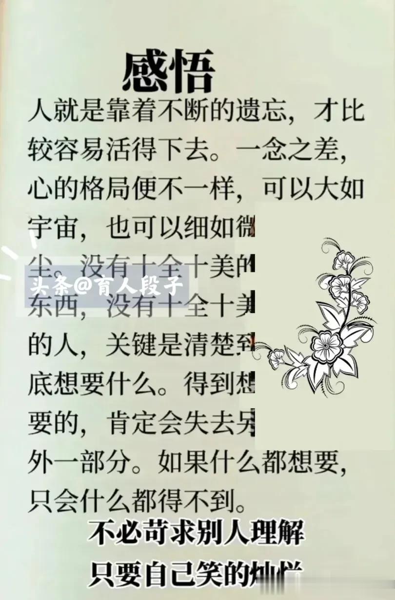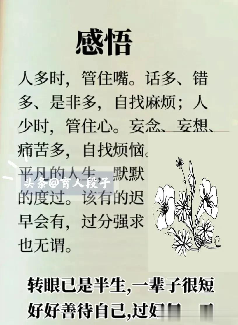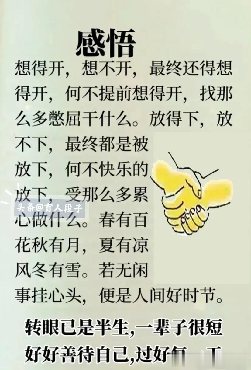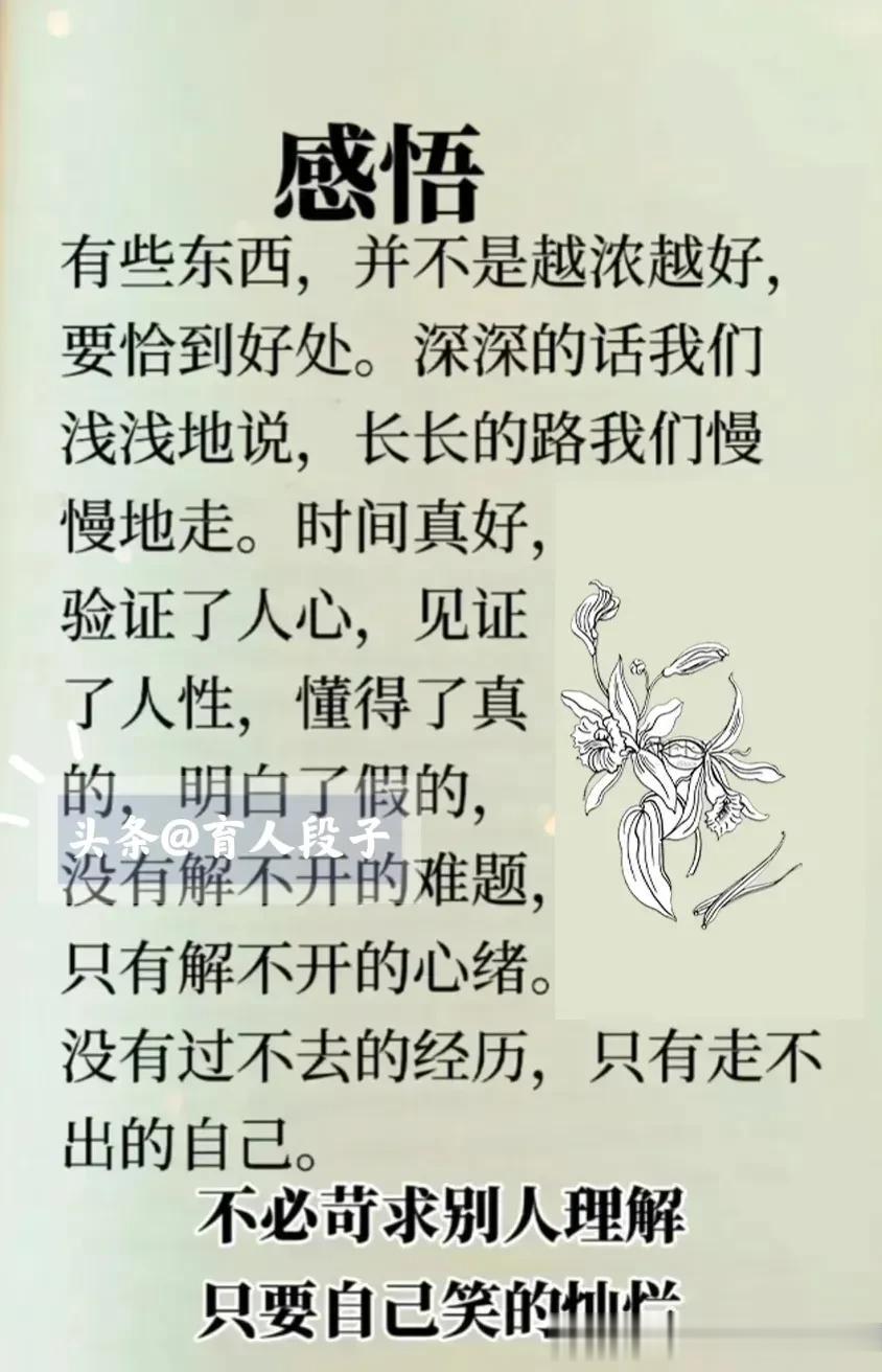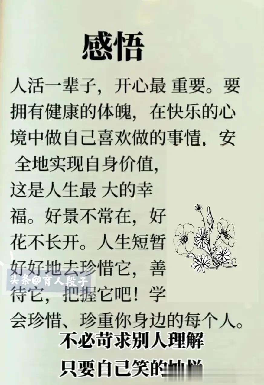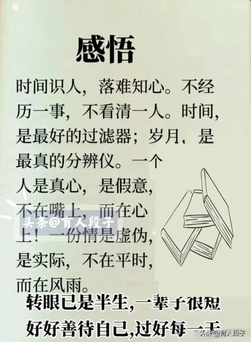 人活一辈子,开心最重要。时间识人,落难知心。不经历一事,不看清一人。爱人先爱己,