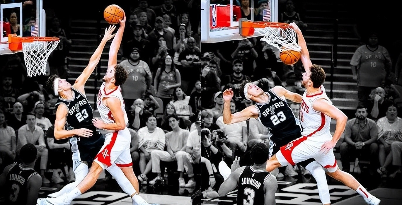 申京这记暴扣,又让人再次想起了杨瀚森。今年夏季联赛第四场,杨瀚森同样转身抹过防守,衔接欧洲步再跨过一人,但因为想上空篮而被二次协防封盖,替补席的队友们纷纷示意他应该扣篮。我也借此讲述了当年火箭队教给姚明的一条金科玉律:能扣篮就绝不上篮。但很多朋友表示:现役球员除了字母哥,很少有人能完成欧洲步+实战扣篮。