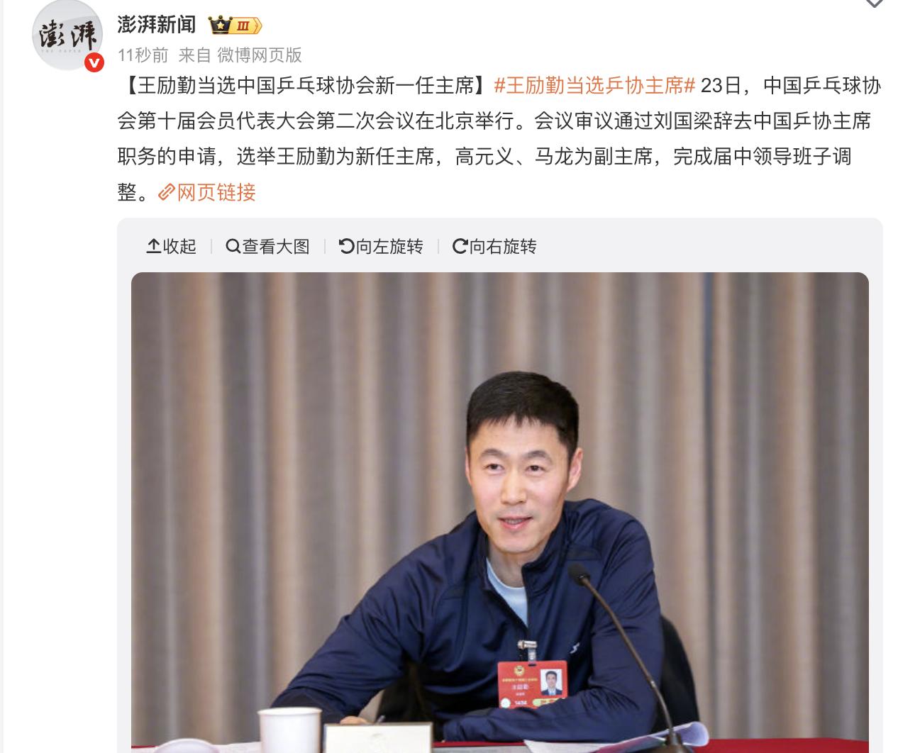 首先大家非常的清楚,自从巴黎奥运会结束之后,这大半年的时间里面国乒遭遇了起起伏伏。包括本次澳门世界杯结束之后,因为国乒男队在本次赛事丢掉了冠军,媒体接连发问国乒到底遇到了哪些问题,也提出建议认为教练组在人才梯队、人才培养方面必须得进行反思。包括很多球迷也担心,我们国乒未来的接班人到底在哪里。所以说实话在当下这个环境下,对于国乒来说完成一次管理层的调整注入新的血液,对于未来的发展其实是一个很好的事情。