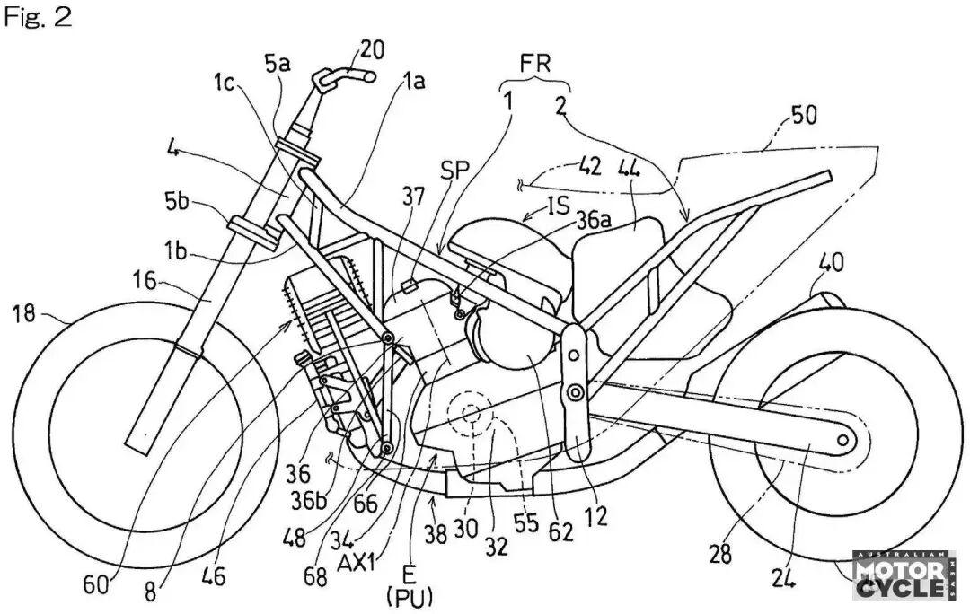 这是一份Kawasaki在海外申报的专利,根据外媒对这份专利的描述可以得知,这台车不仅搭载了一台双缸水冷引擎还采用了自动挡结构,与其搭配的还有一套混动系统。这套混动装置看着与Ninja 7有些类似,但在车身结构上却完全不同。