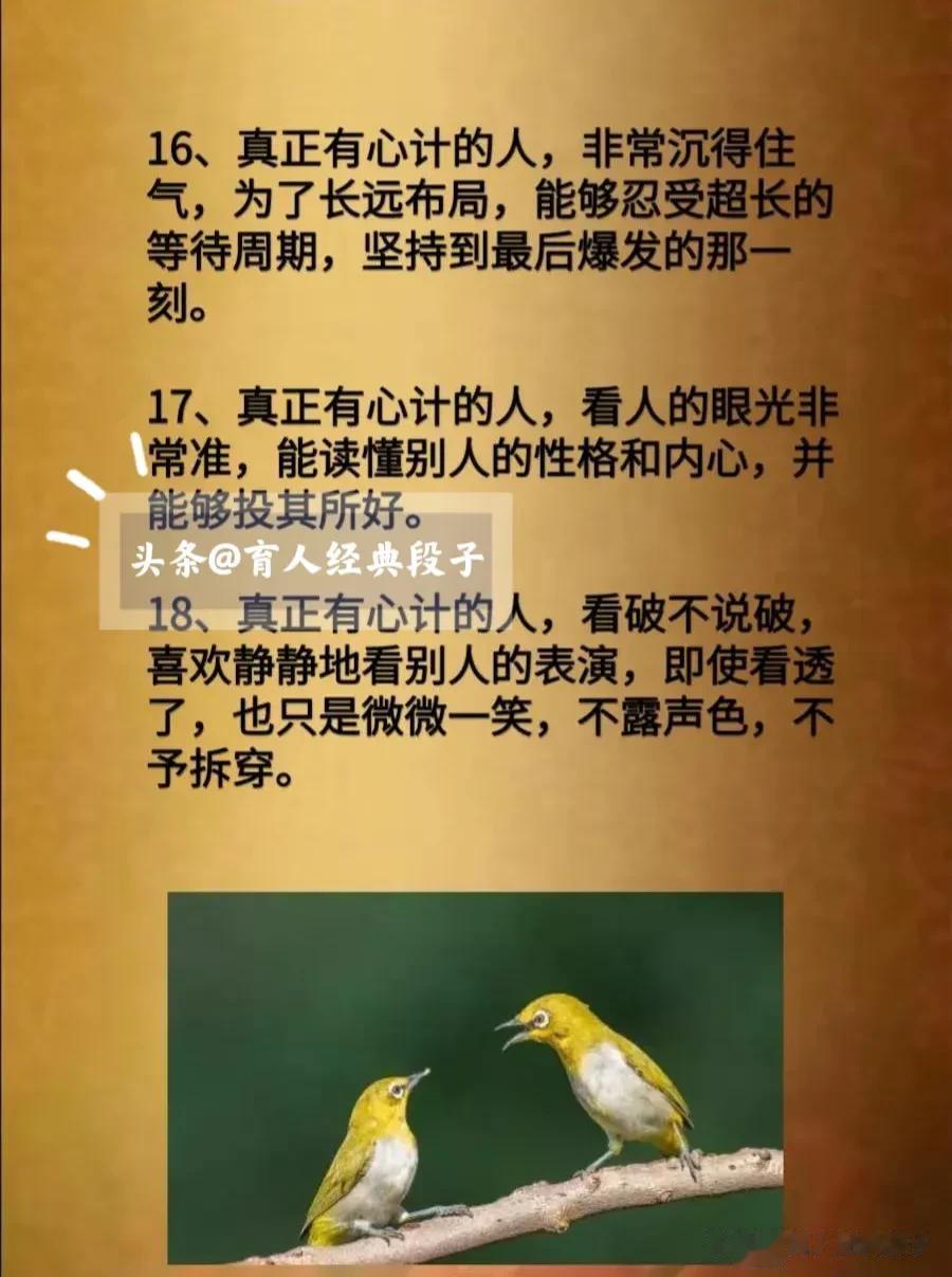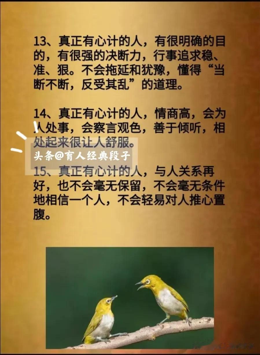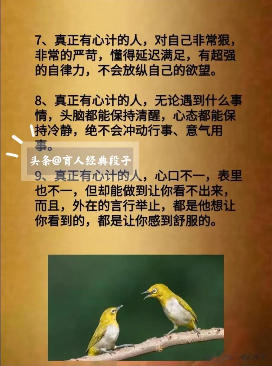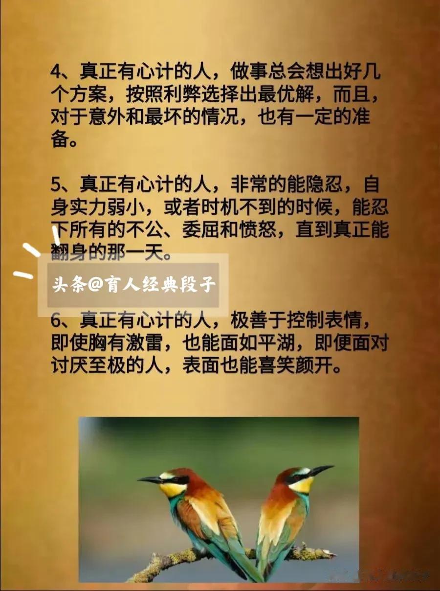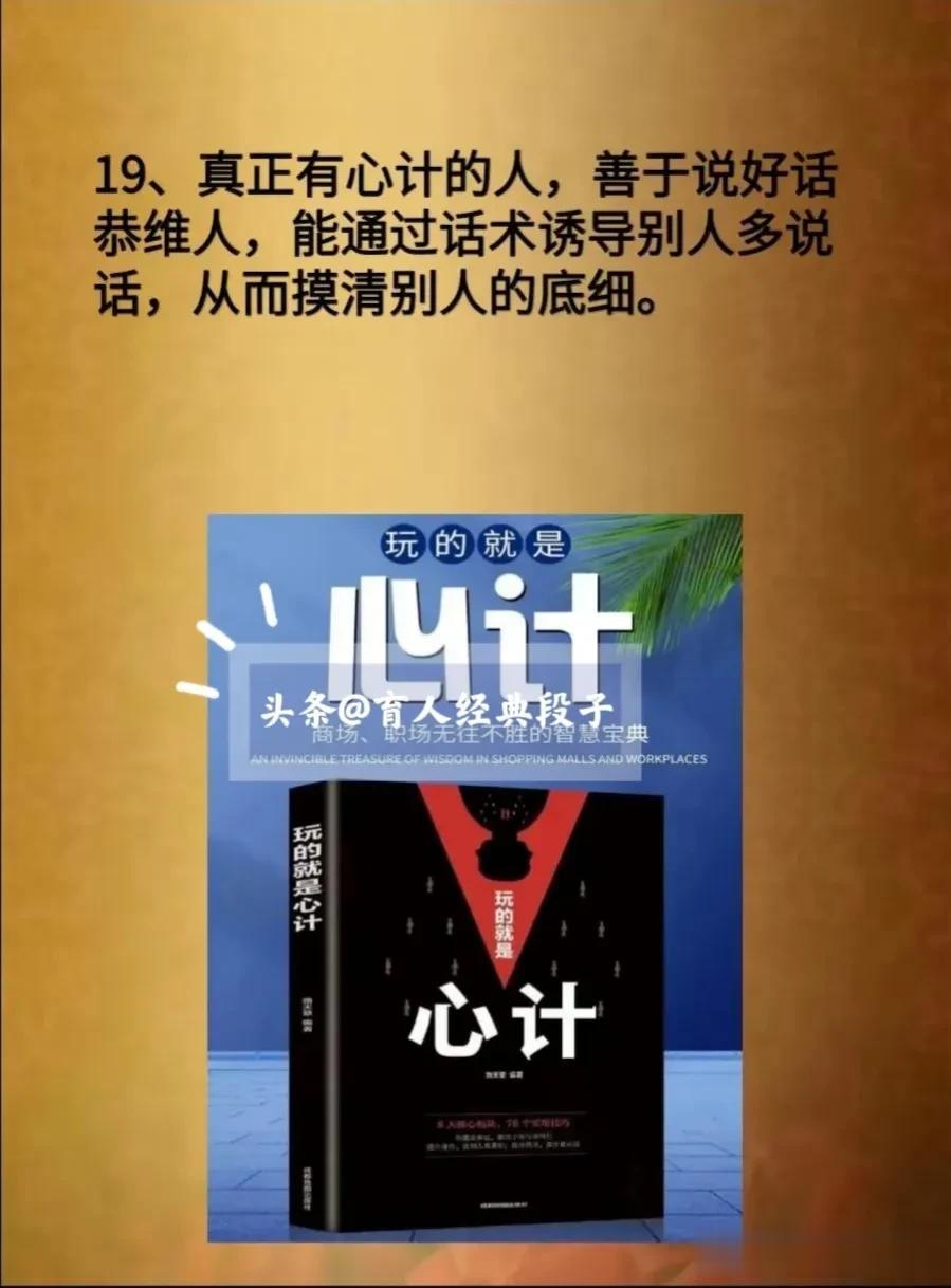 做人做事,真正有“心计”的人,都有一些共同的特征,如果你想掌握更多做人做事的技巧,成为这样有心计的人,在社会中,一定要玩点心计。心计是大智慧而不是小聪明,大格局而不是小计较,心计可不是害人的利器,而是办事的智慧,和防人的手段。做人要宽容大度,做人要难得糊涂,做人要将心比心。 玩的就是心计