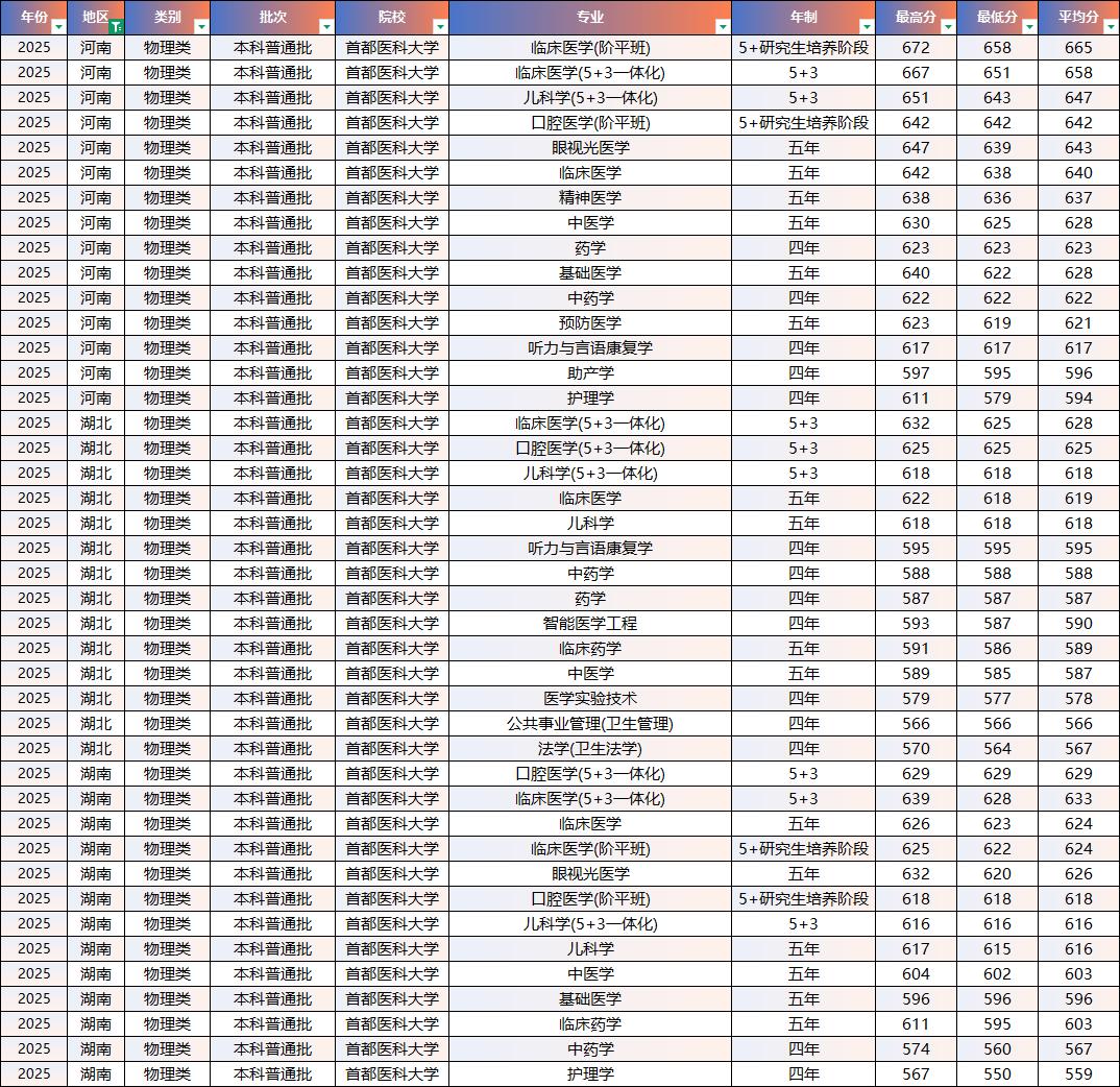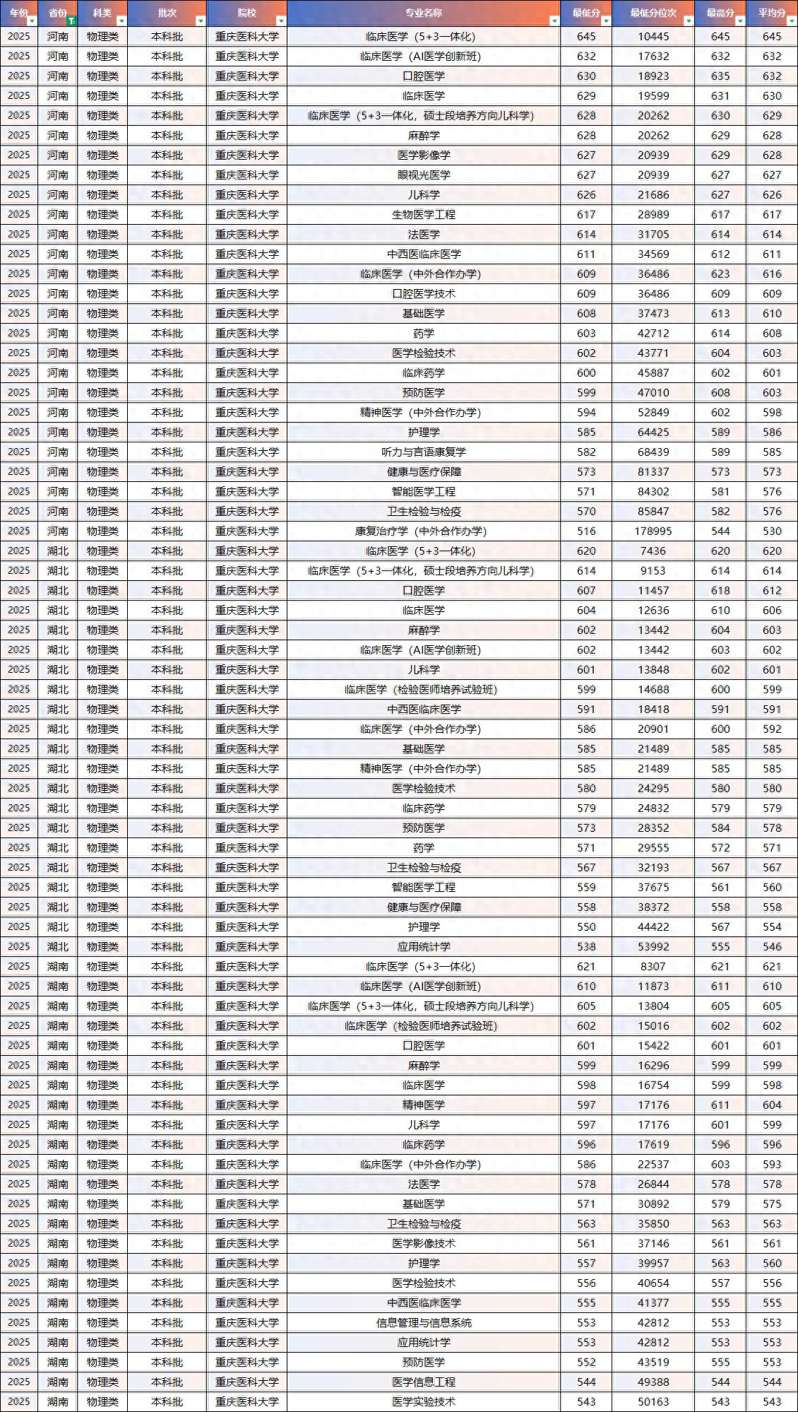 2025年重庆医科、南方医科、首都医科录取分数线-【华中区域】