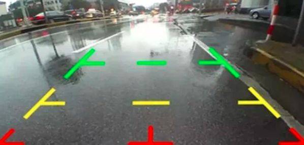 其中红线表示方向盘死的时候,车辆行驶的路线,车主看到这条线时,到目前为止可以做出一个判断; 黄线表示减速线,从这个位置到车后部的距离通常在60厘米左右,可以继续后退,绿线是表示轮胎正常行驶的标志线。