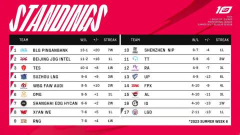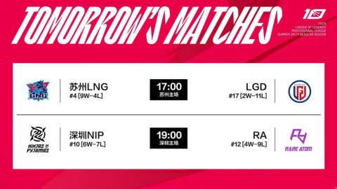 今日赛果、积分排行及明日赛程: AL 0-2 WBG EDG 2-1 FPX JDG 1-2 IG 今天的比赛还是很刺激的,WBG赢得毫无悬念,EDG虽丑但赢,JDG被IG送上了第二败,严重翻车。 事实证明,寒师傅真的太刮了,JDG拿着也没用,第三把虽然输是因为IG的抢龙和JDG的双C老是被勾,但其实换个有用点的AD,很多波都是能打赢的。 积分方面,BLG目前稳坐第一了,倒数第一还是LGD。 而EDG赢下了FPX,也意味着进入了季后赛。 IG赢下了JDG,季后赛机会增大,但输太多了也没大到哪里去。 明天是两场比赛。 2023LPL夏季赛7月10日首发名单 17:00 LNG vs LGD 19:00 NIP vs RA 明天比赛的看点,就是进不去季后赛的LGD,能不能当成水鬼。 而NIP就有不得不赢RA的理由了,季后赛最后俩名额了,赢不赢对它来说很重要。