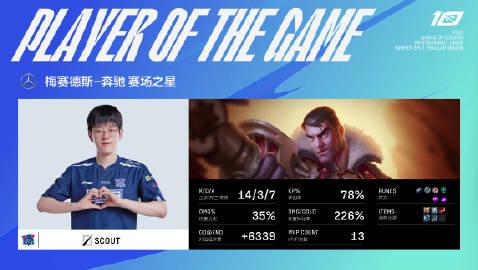 【LNG vs LGD 第一局】 MVP:Scout(杰斯) 哦豁,LGD水鬼技能看来是发动不了了~