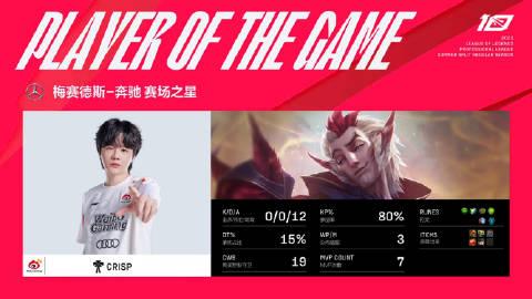 【RNG vs WBG第一局】 MVP:Crisp(洛) 这能被零封的啊?