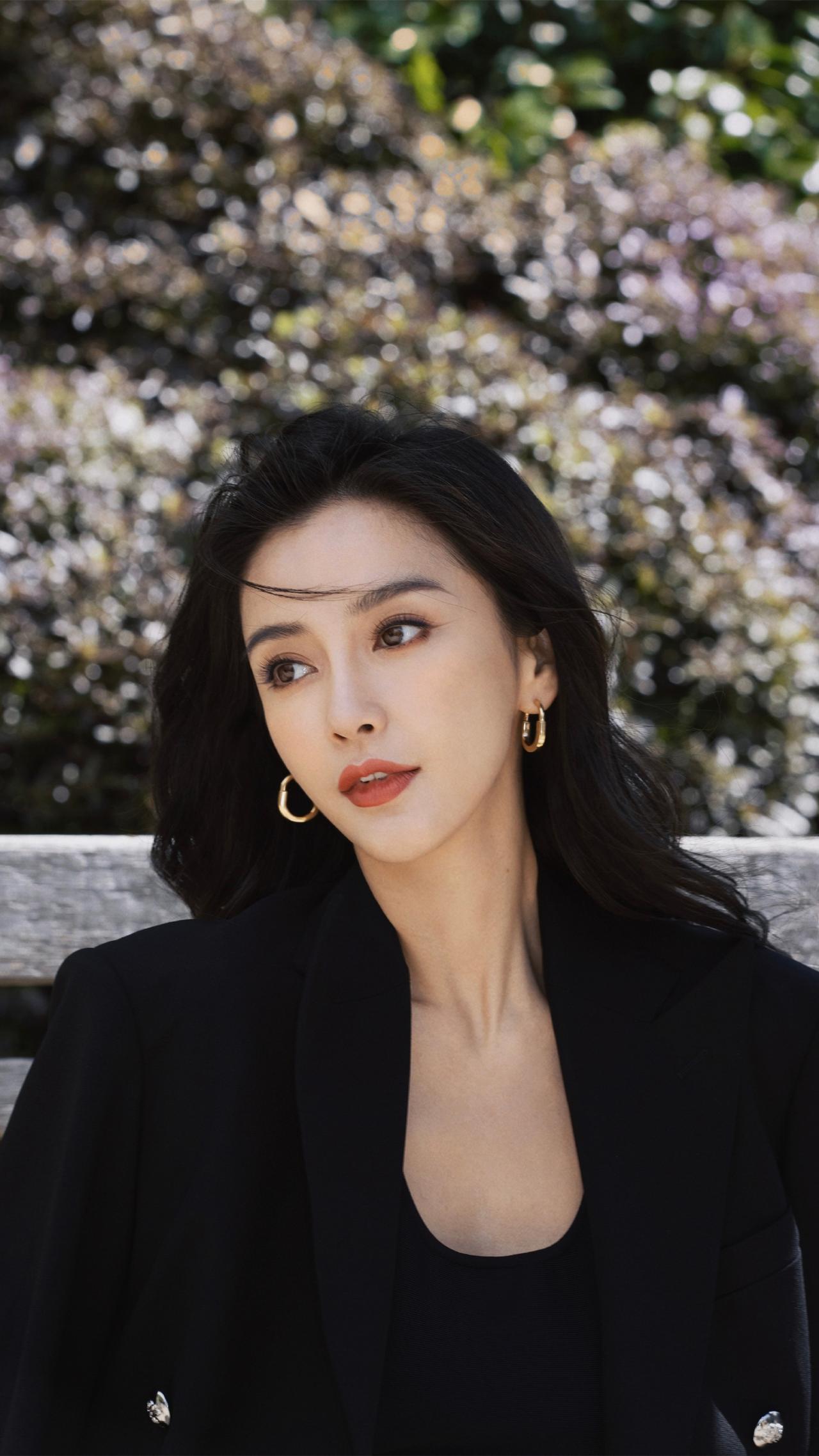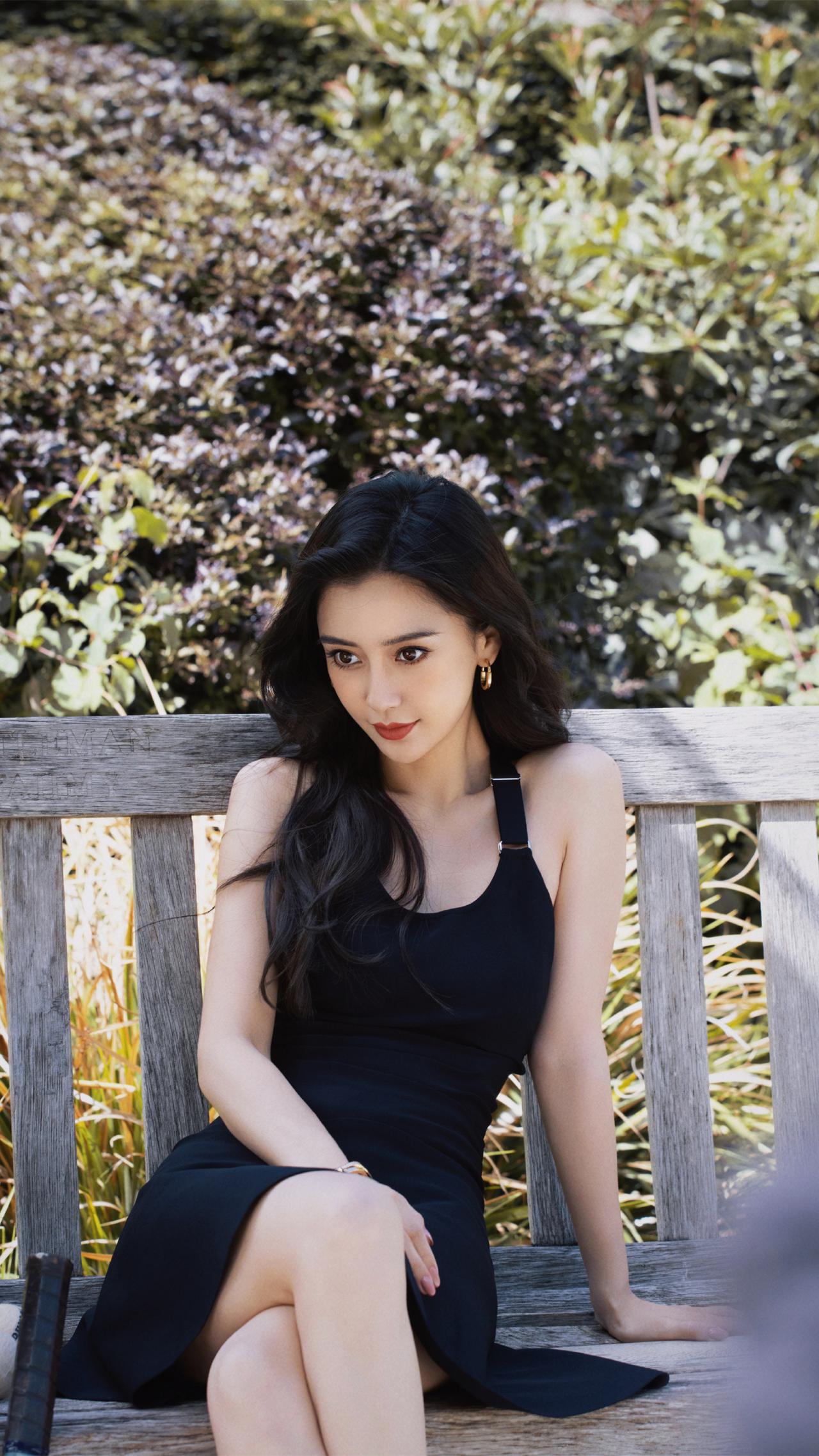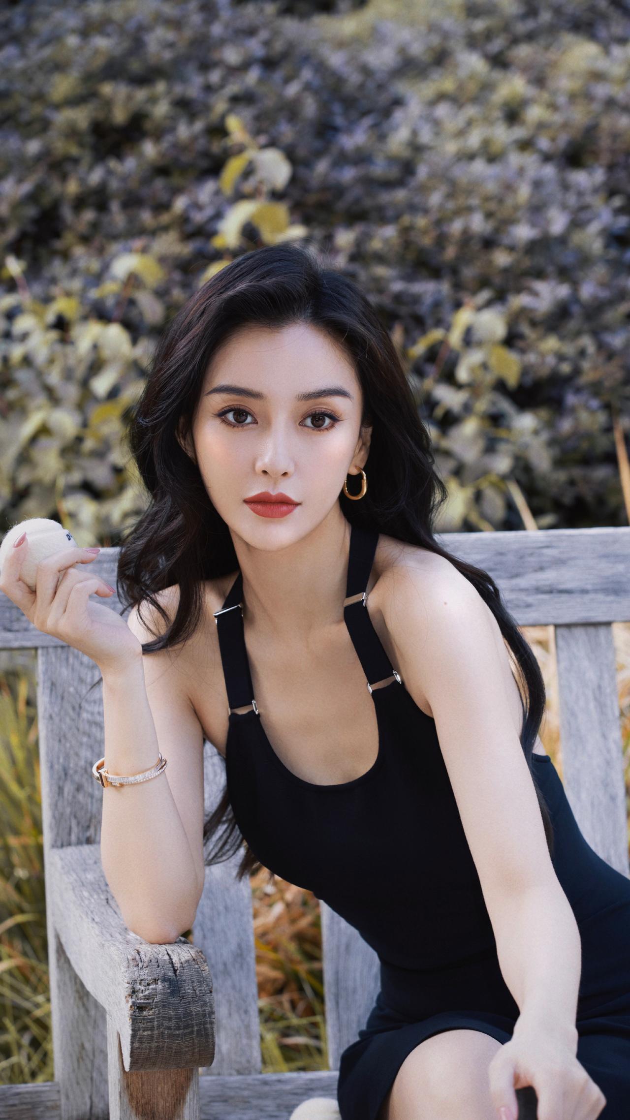 angelababy手机壁纸,黑色经典摩登气息,简约线条勾勒曼妙身姿