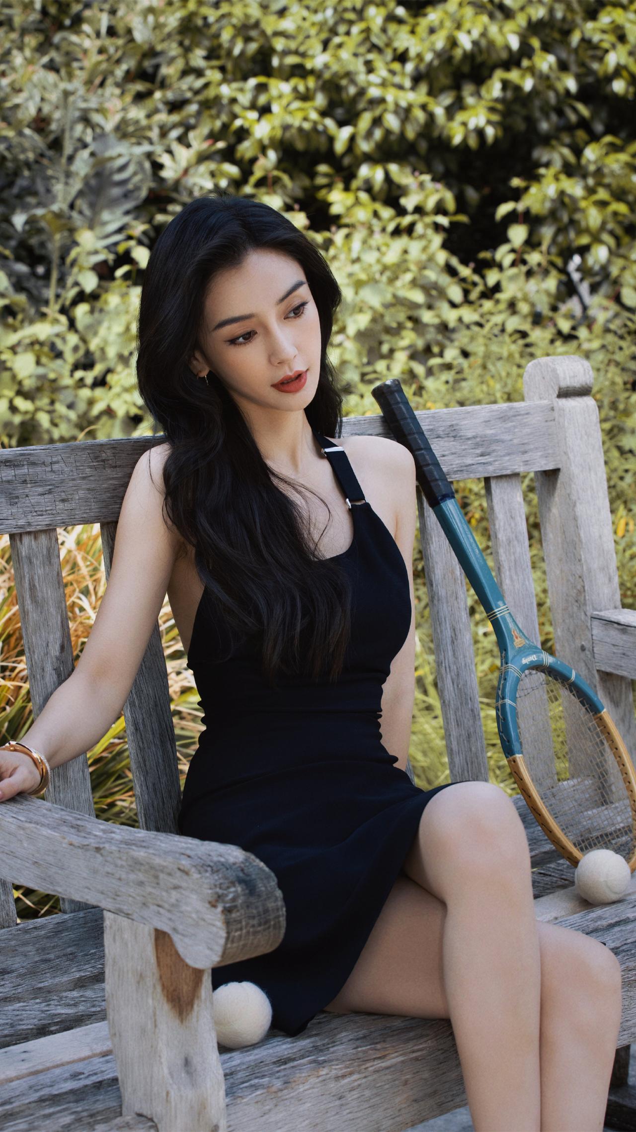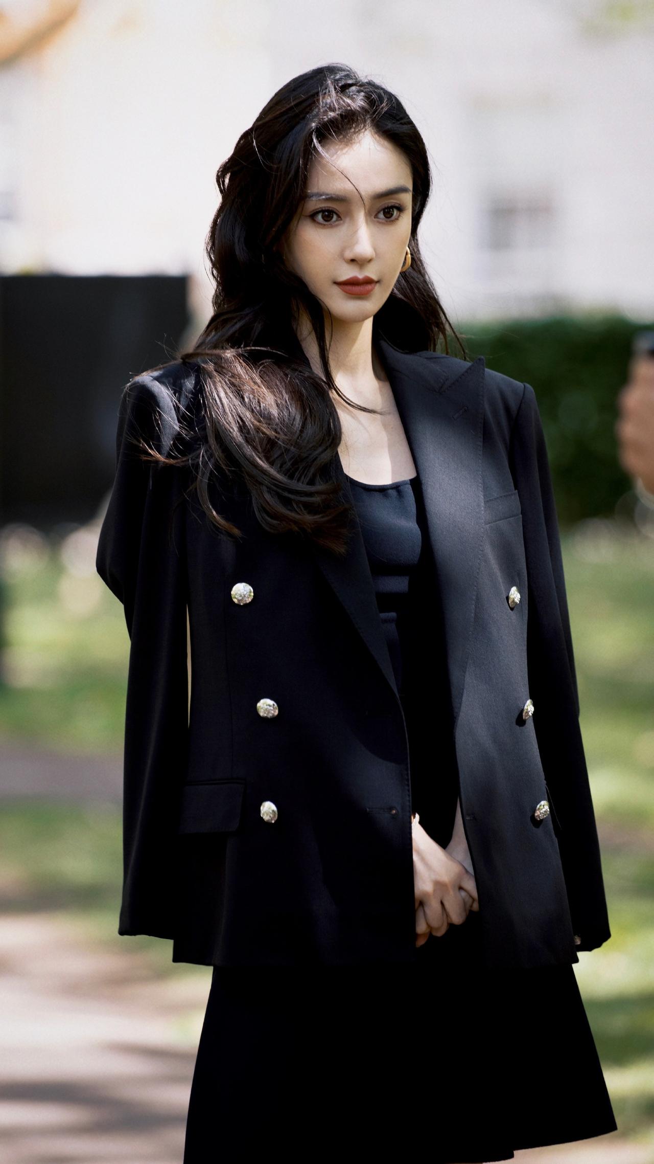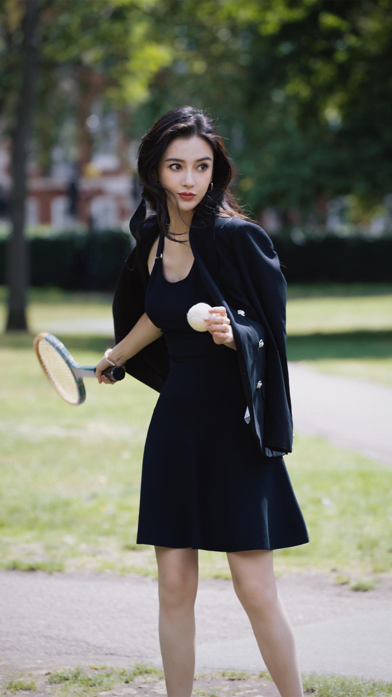angelababy手机壁纸,黑色经典摩登气息,简约线条勾勒曼妙身姿