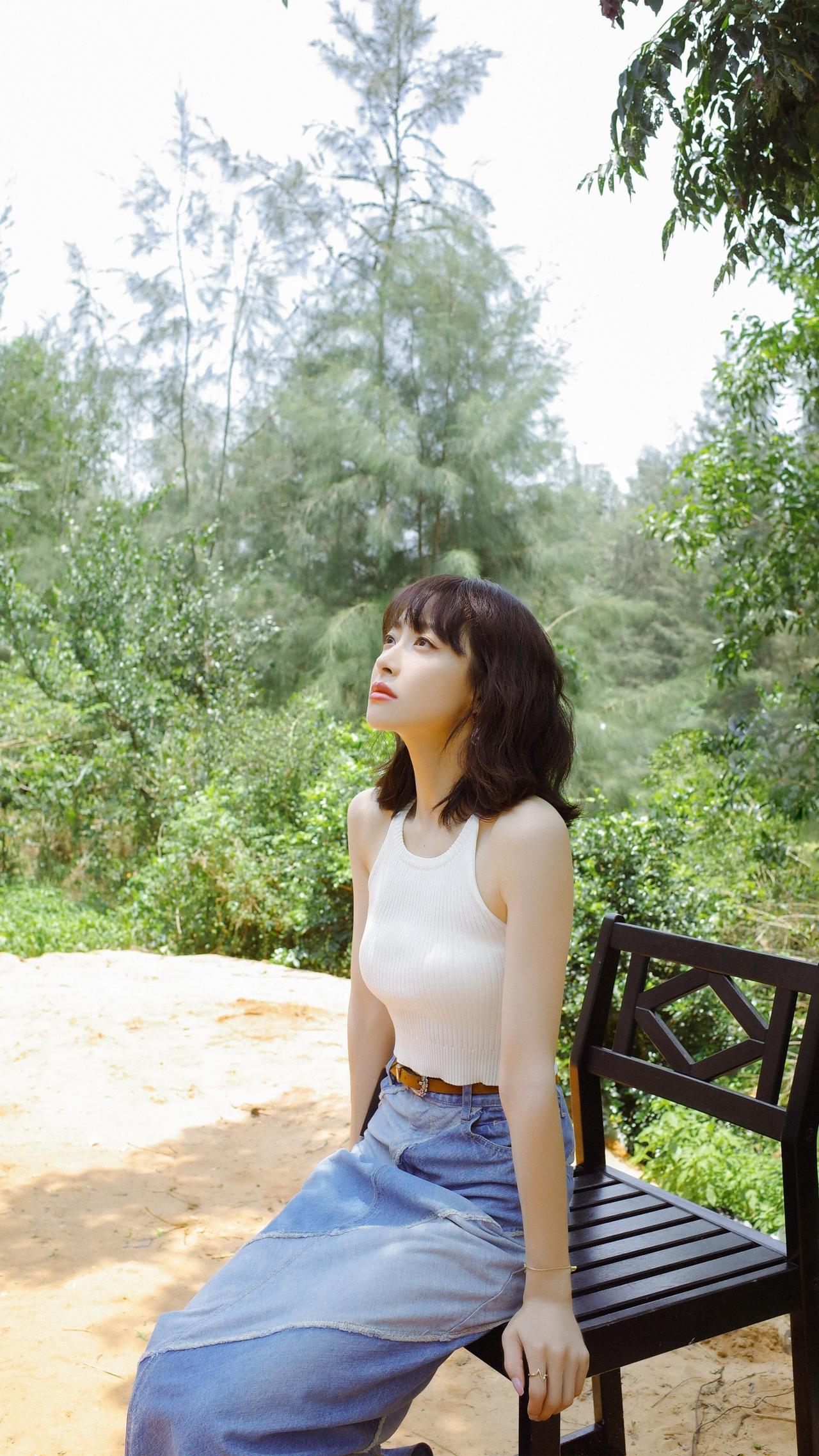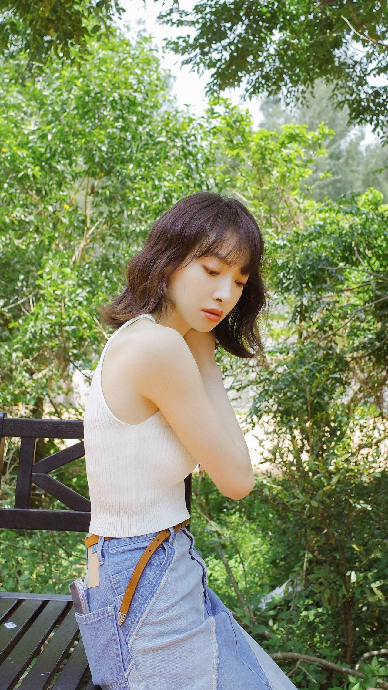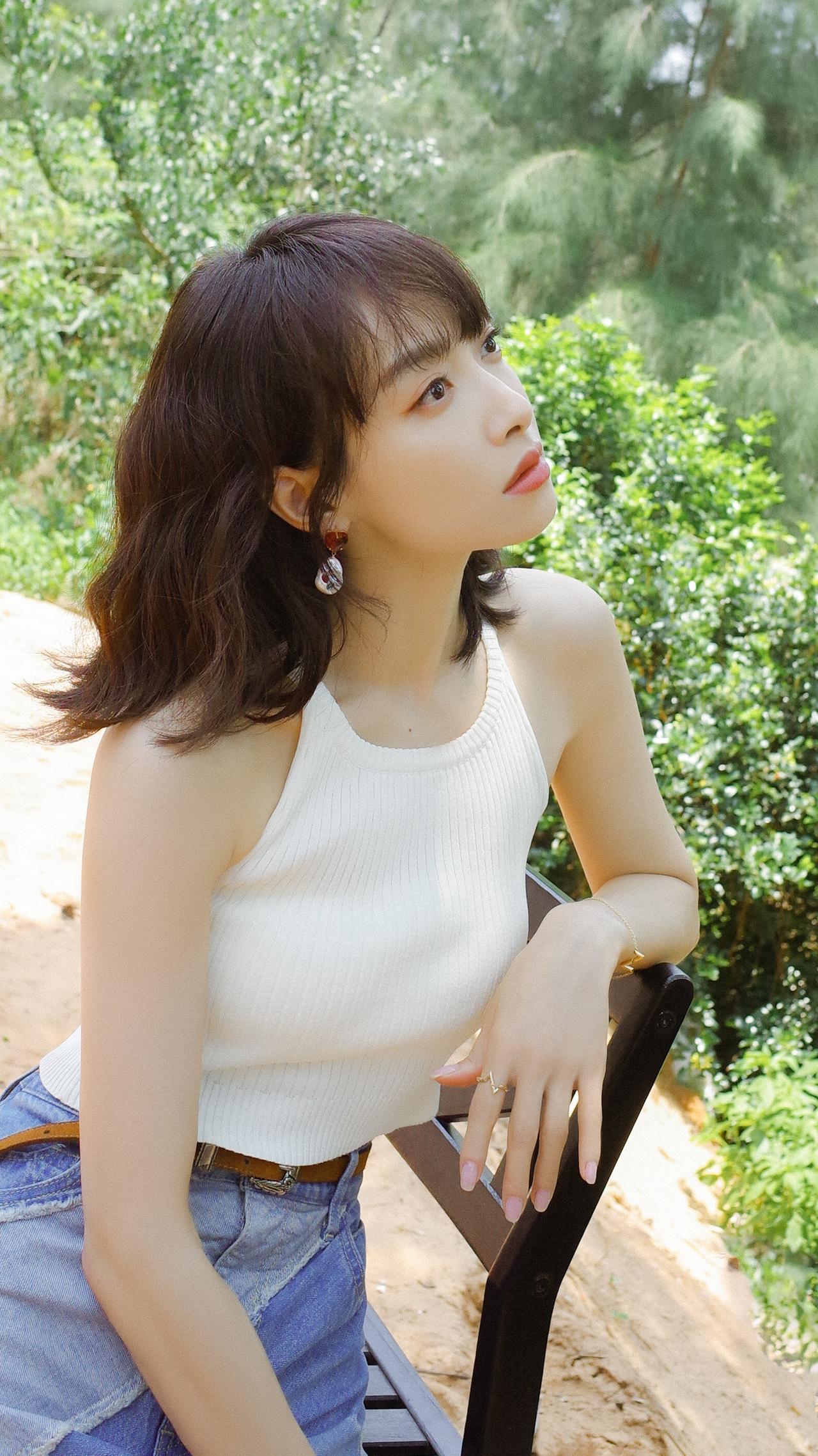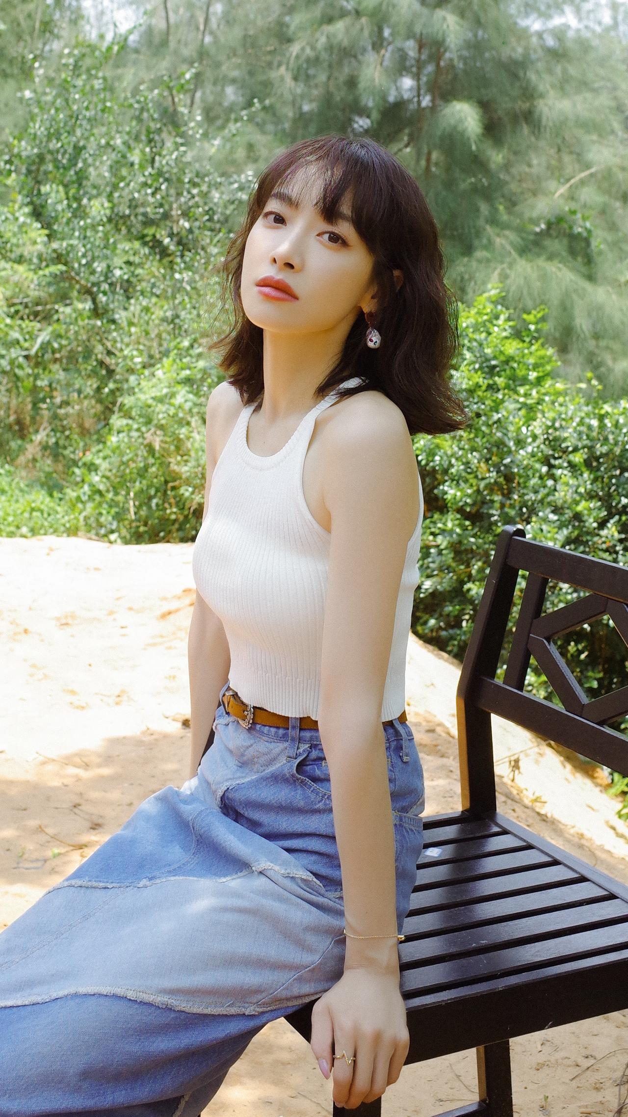 祝绪丹夏日写真,慵懒背心私服清新壁纸