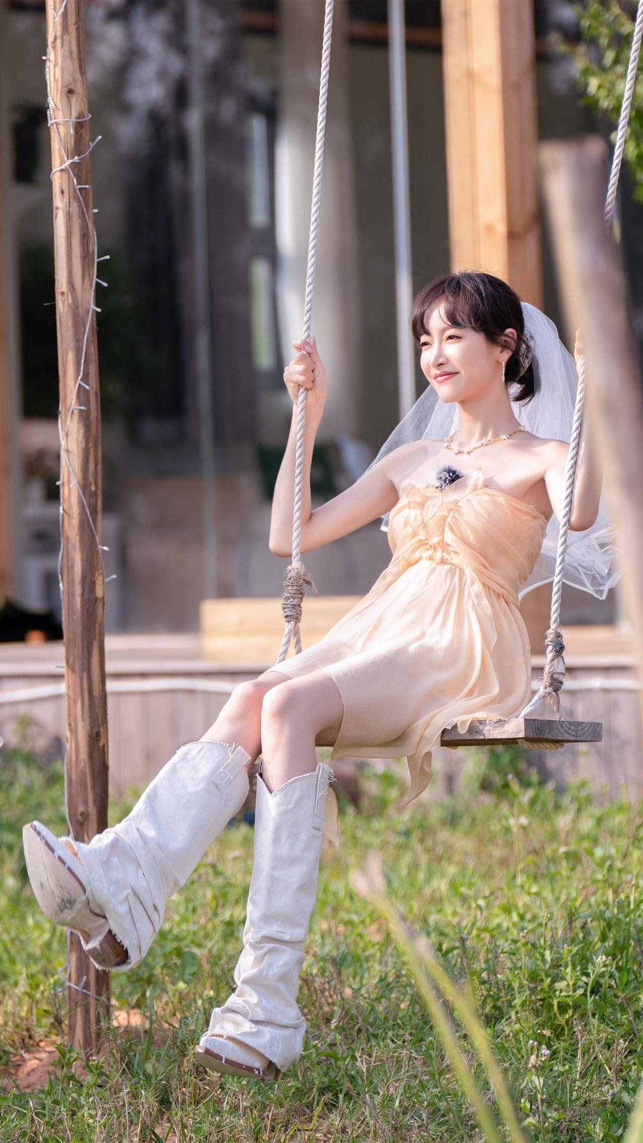 张俪手机壁纸,粉色穿搭,浪漫优雅,款款而来。