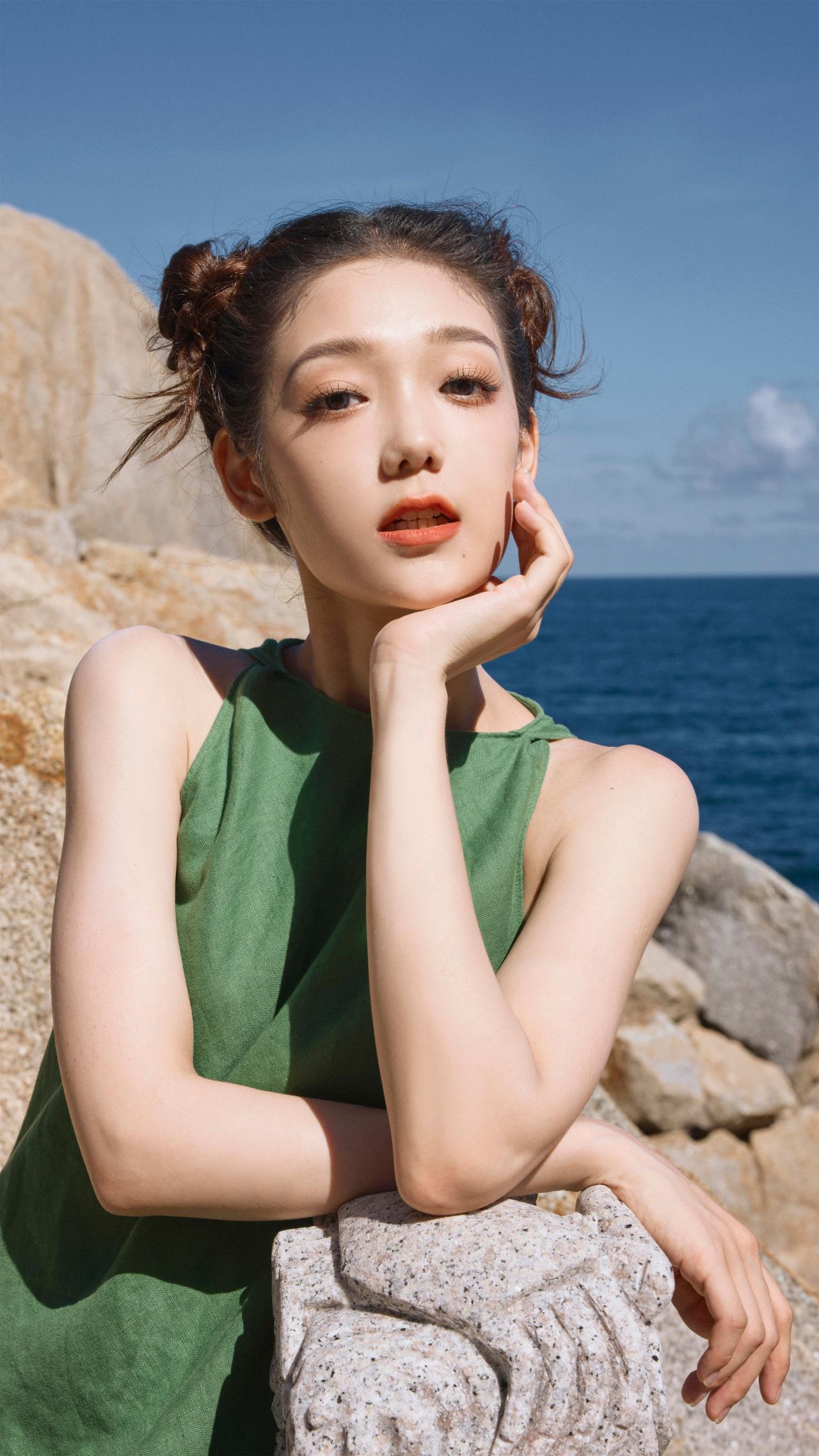 希林娜依高手机壁纸,悠闲恬静海边碎片少女感满满