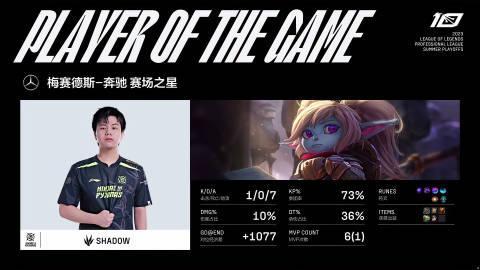 【RNG vs NIP】第一局 MVP: shad0w (波比) RNG一条龙没控到,这单带个啥?