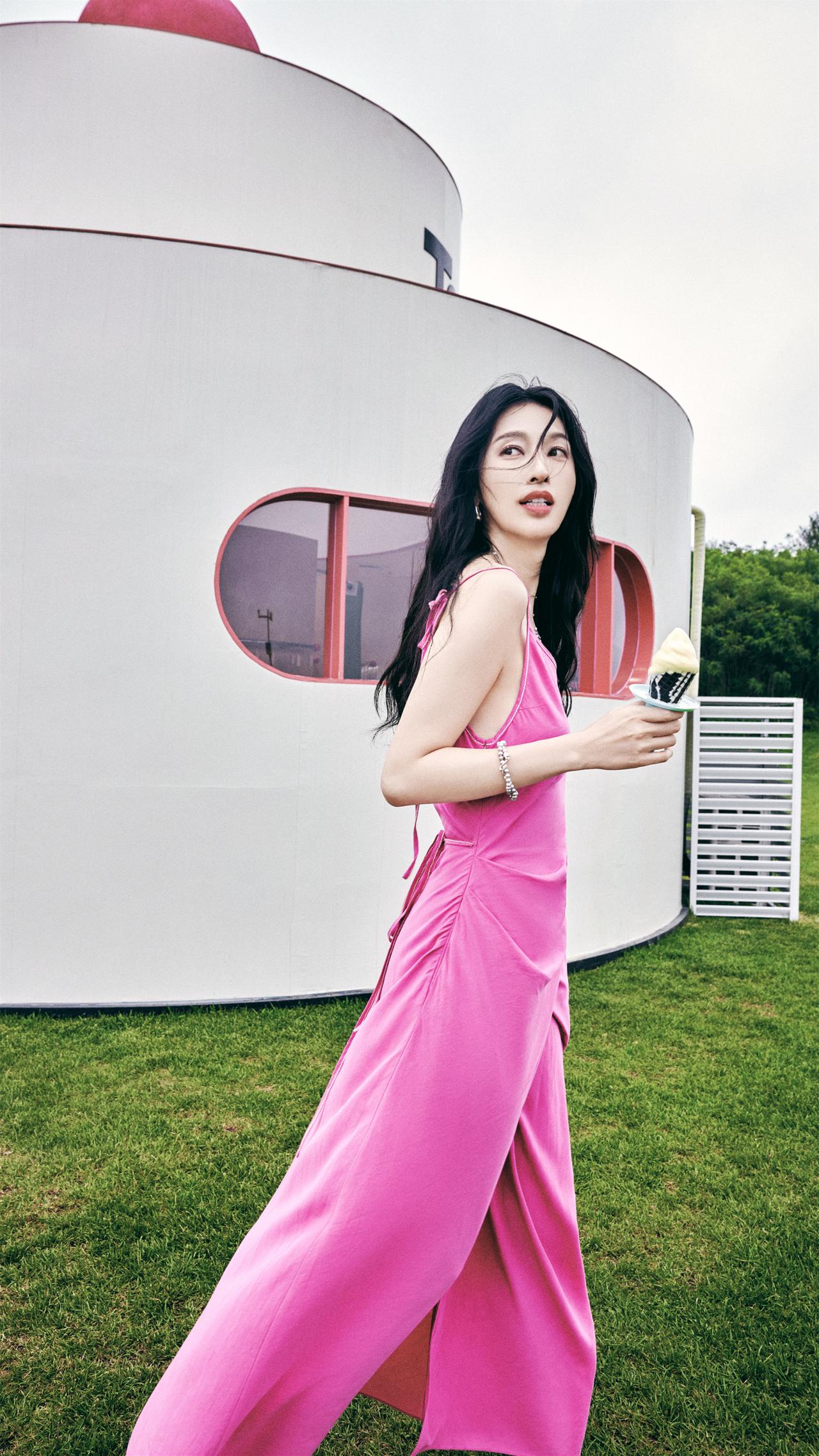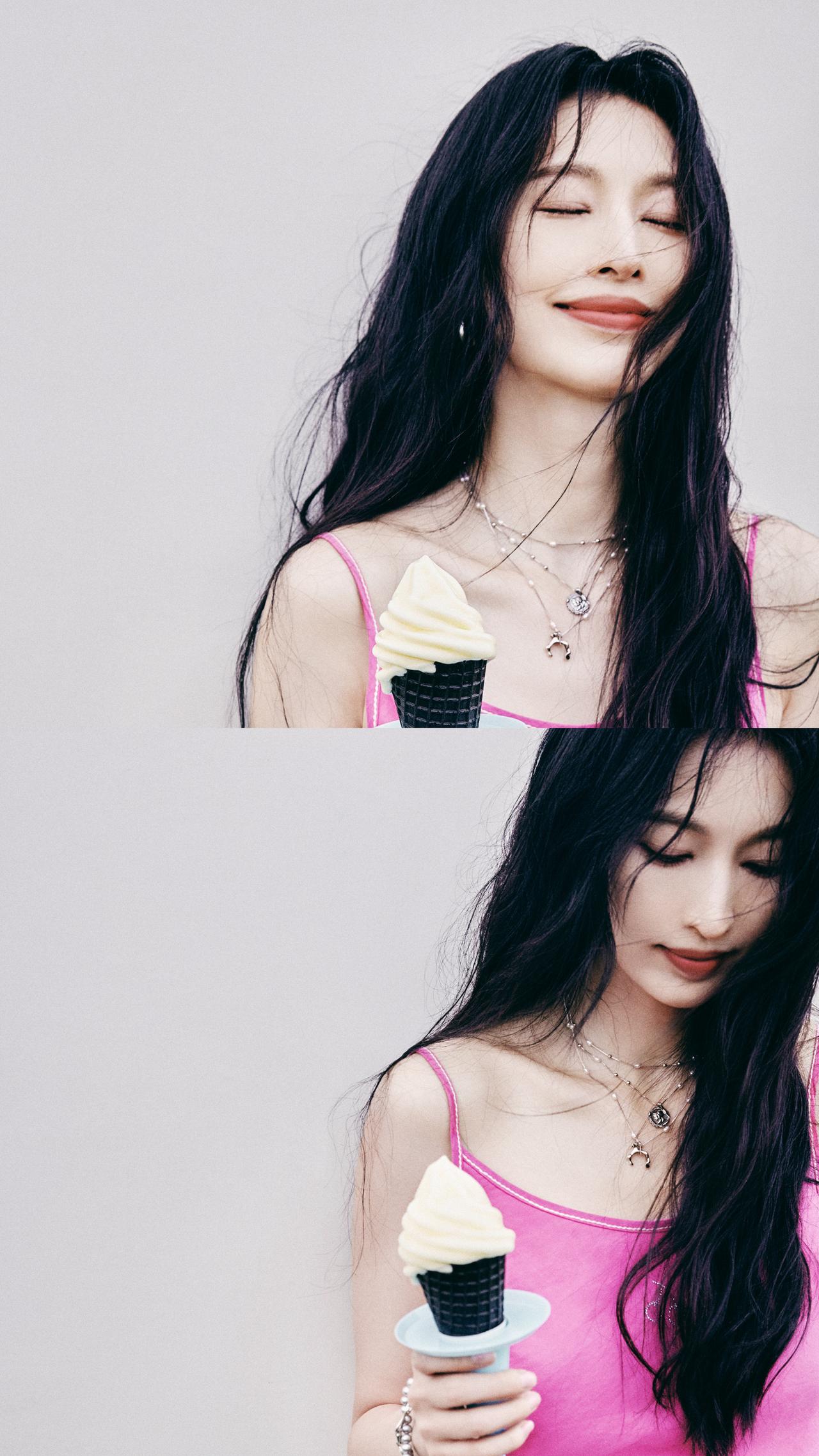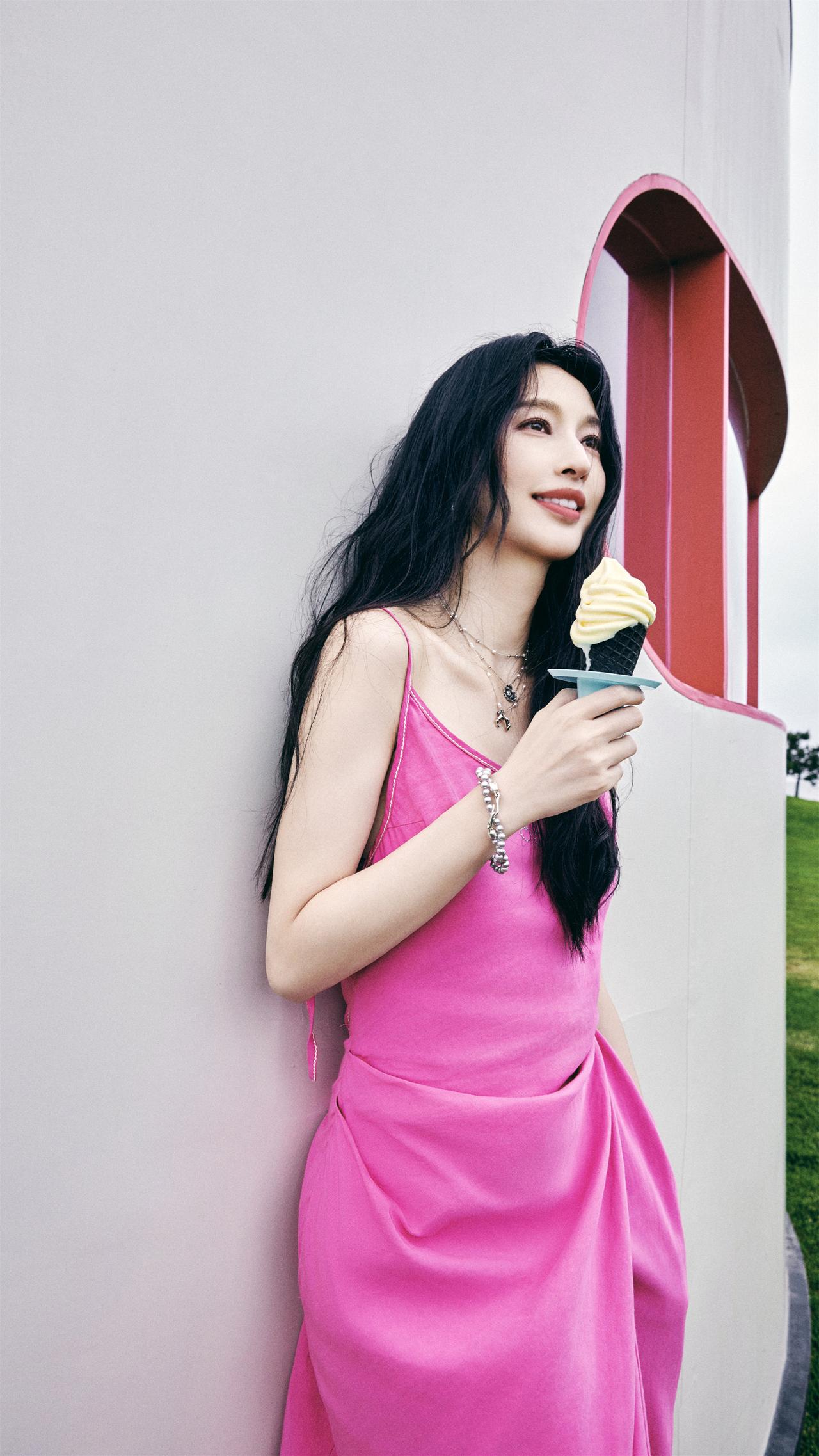 张俪手机壁纸,粉色穿搭,浪漫优雅,款款而来。