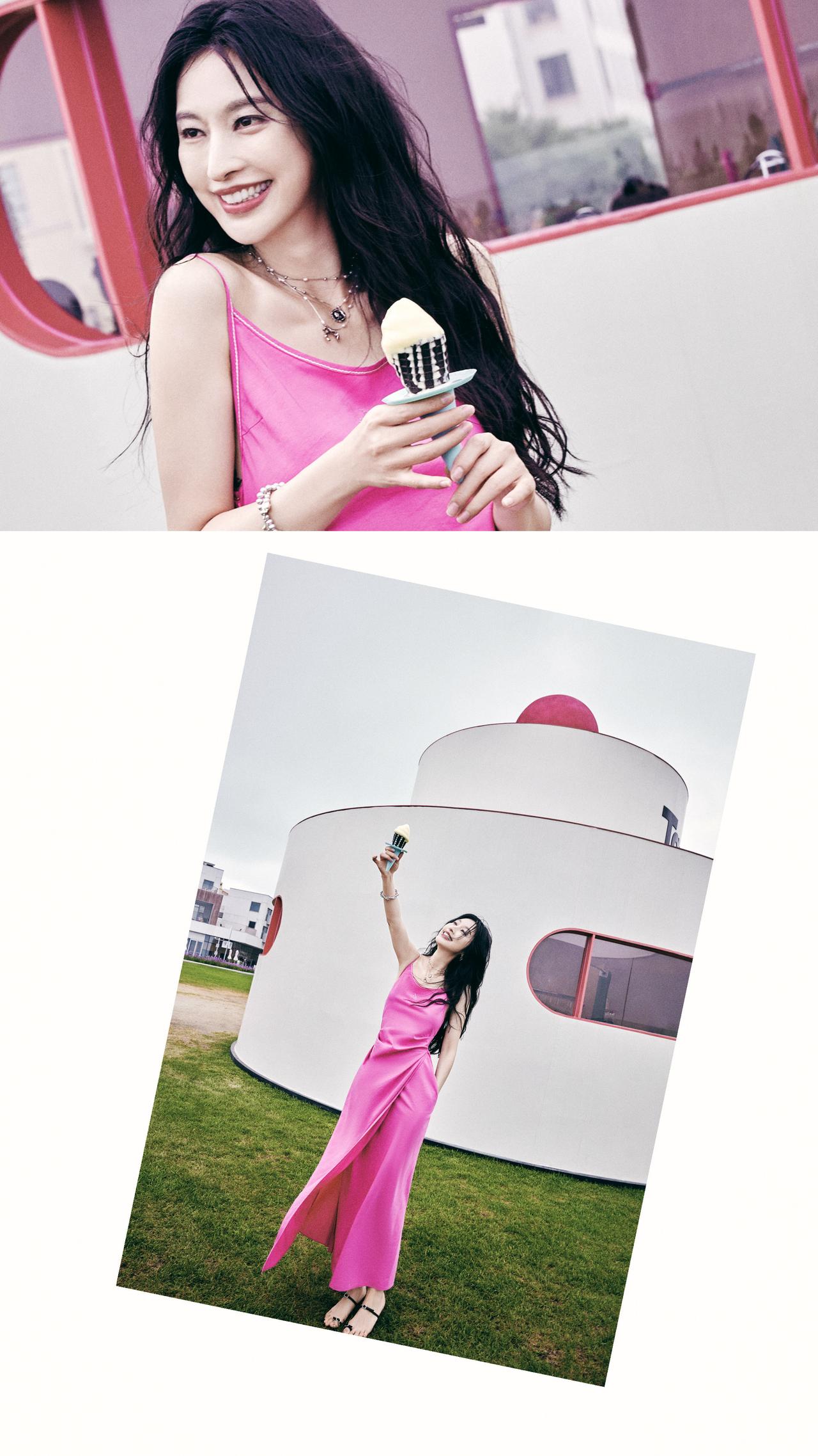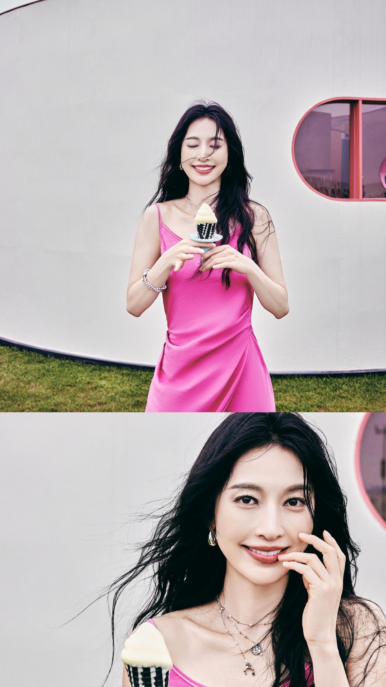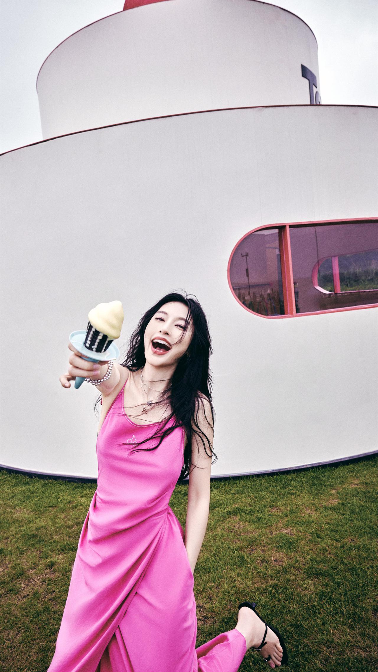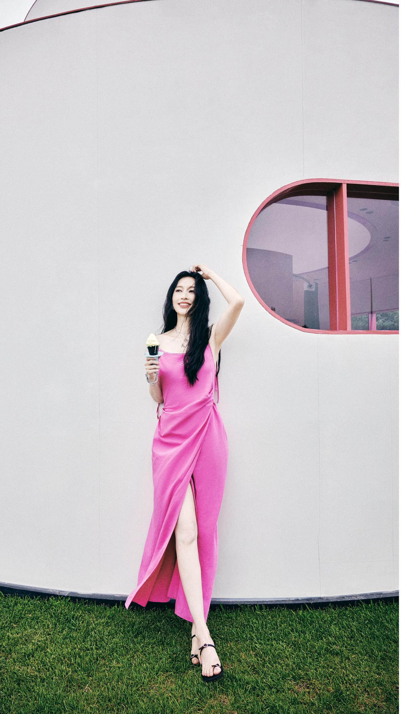 张俪手机壁纸,粉色穿搭,浪漫优雅,款款而来。