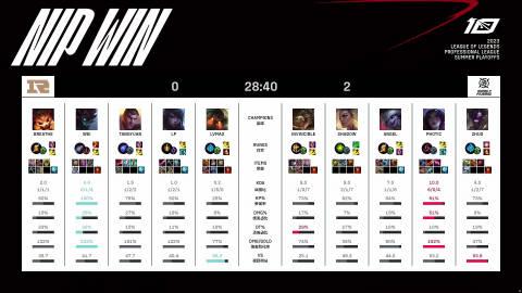 【RNG vs NIP】第二局 MVP: Photic (卡莎) NIP率先拿到赛点,RNG换上了辅助lele。