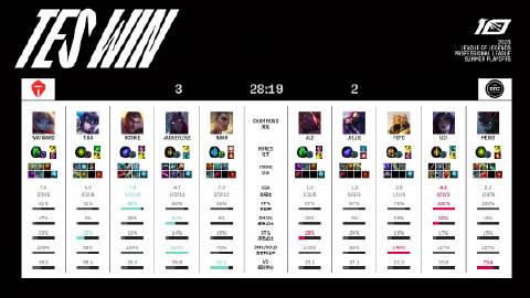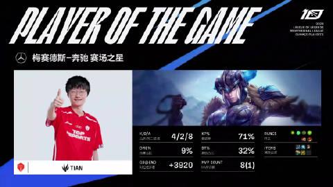 【TES vs EDG 第五局】 MVP:Tian(瑟庄妮) TES晋级季后赛四强,EDG可以准备冒泡赛了。