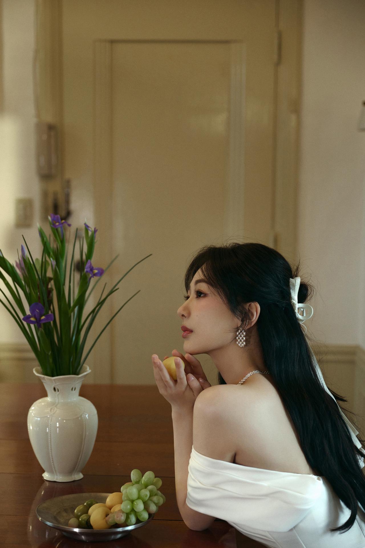 杨紫直播造型大片,白色抹胸高开叉长裙壁纸组图