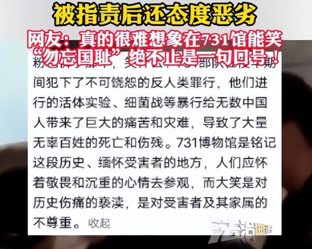 731纪念馆,这个承载着历史记忆的严肃场所,最近发生了一起让所有人都震惊的事件,一名紫衣女子在此等场所竟能笑出来!