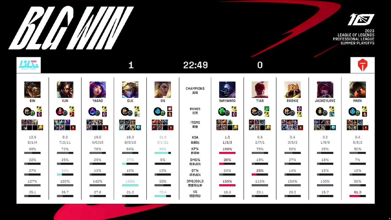 【BLG vs TES】第一局 MVP: ON (芮尔) 纯碾压局